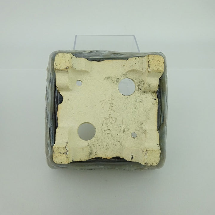 中古盆栽鉢 桂雲 福田桂雲 小型 長辺 約12.3cm 正方鉢 釉薬 観賞用 中古鉢 e1198411128