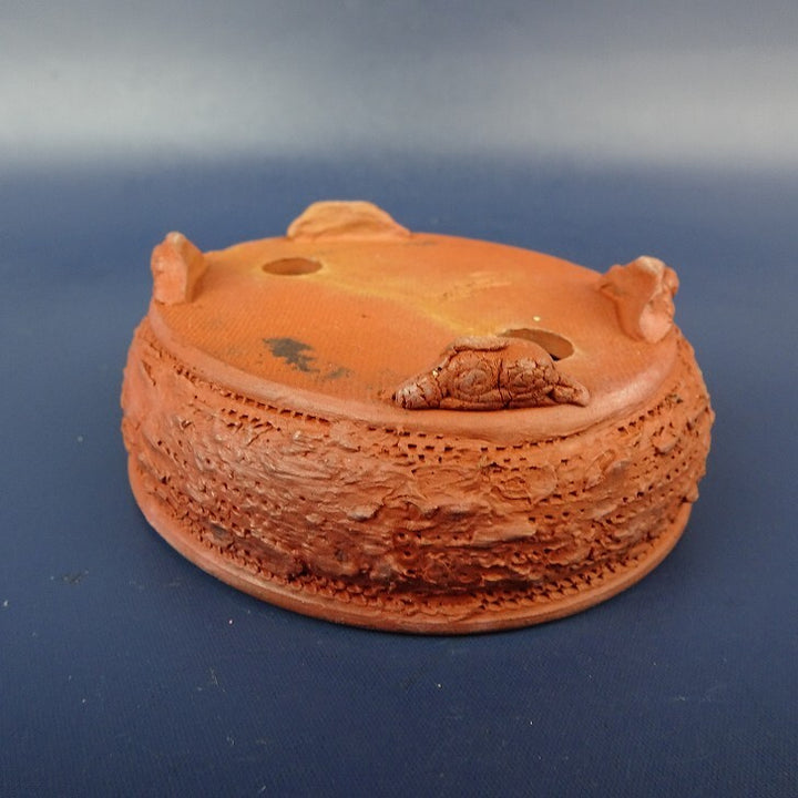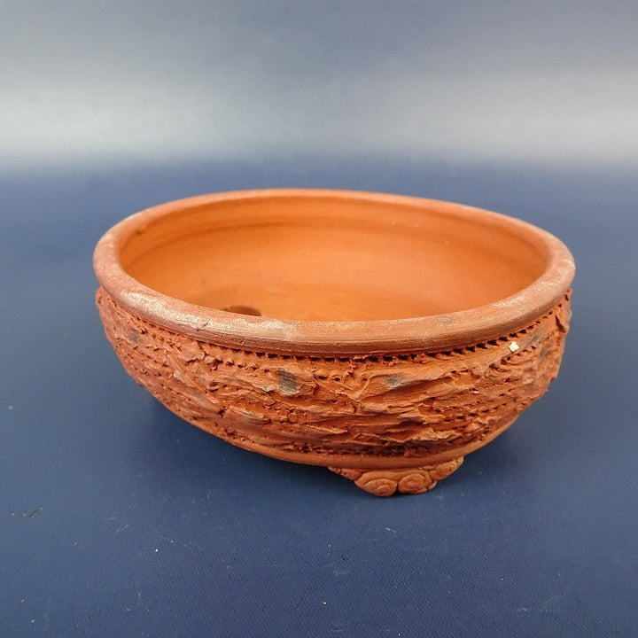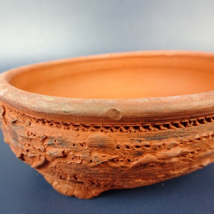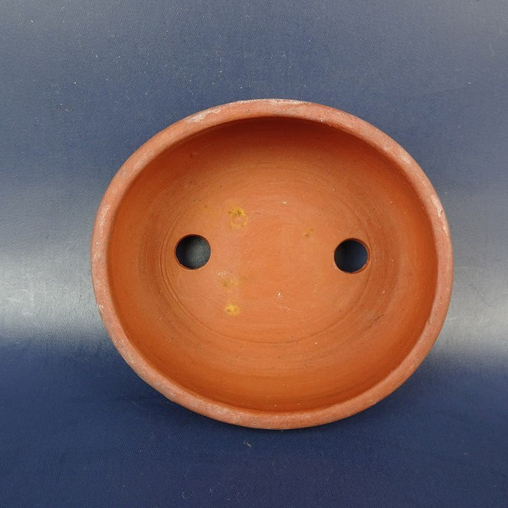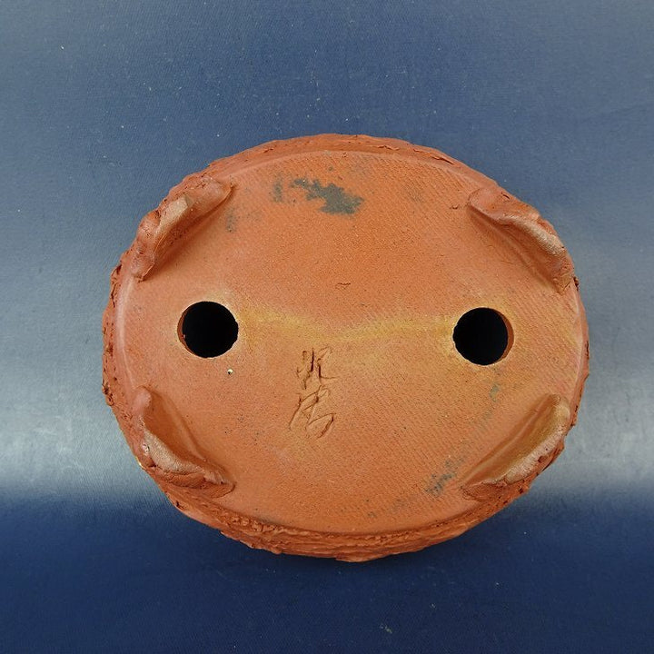 中古盆栽鉢 泥珠 小鉢 長辺 約9cm 楕円鉢 外縁 雲足 模様 泥鉢 中古鉢 v1198433288