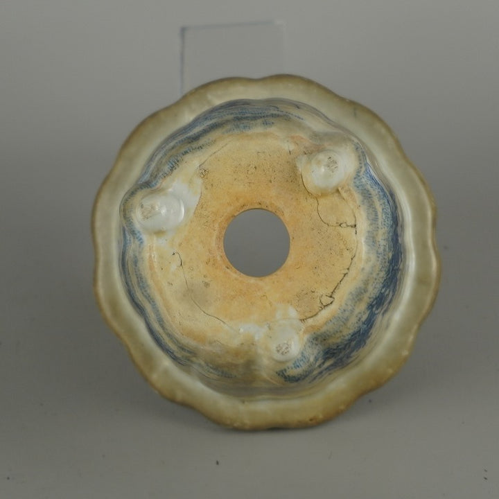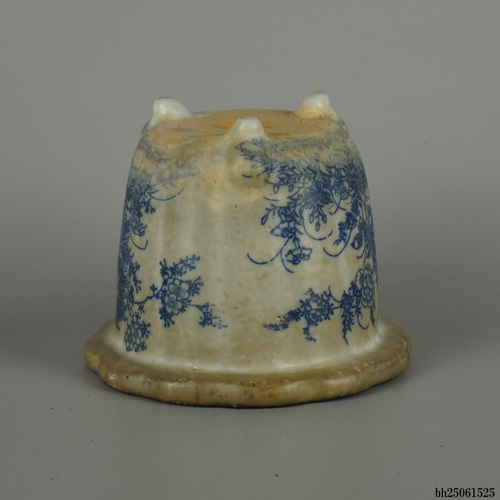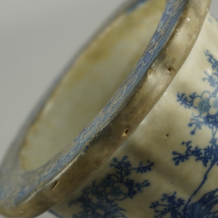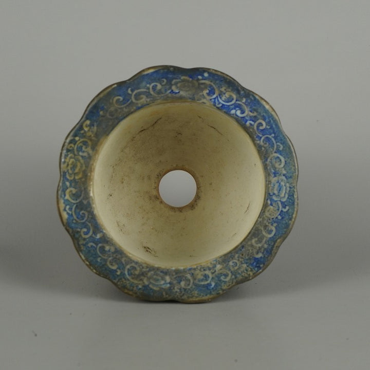 盆栽鉢 瀬戸焼 小型 長辺 約 12.2cm 輪花鉢 染付 花 植物 模様 観賞用 現品 中古鉢 品名瀬戸焼 大正...
