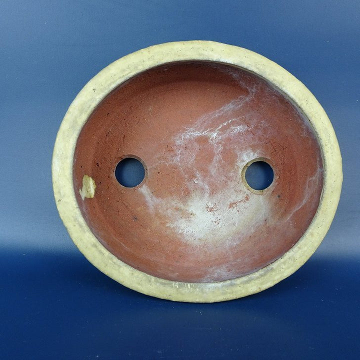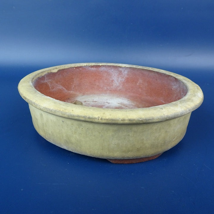 中古盆栽鉢 燿山 小型 長辺 約14.8cm 楕円鉢 外縁 釉薬 中古鉢 n1198411023