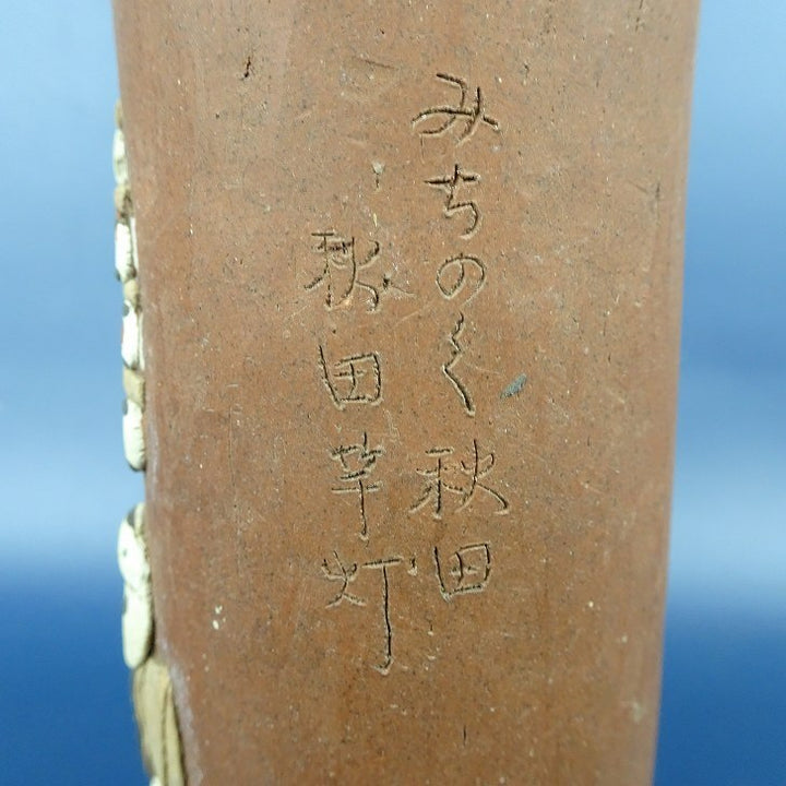 中古盆栽鉢 神戸 修 小型 長辺 高さ 約11.5cm 丸鉢 色絵 貼付 秋田 竿灯 泥鉢 中古鉢 s1198414775