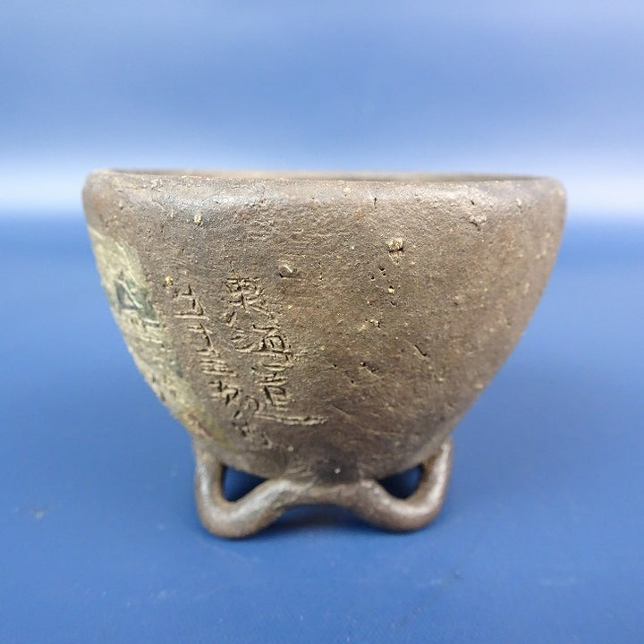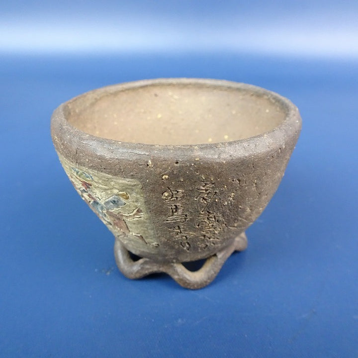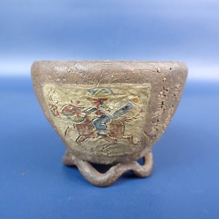 【中古】盆栽鉢 神戸 修 小鉢 長辺 約5.3cm 丸鉢 彫入 絵鉢 人物 馬 風景画 泥鉢 箱付 現品 中古鉢 品名神戸 (箱付 )...