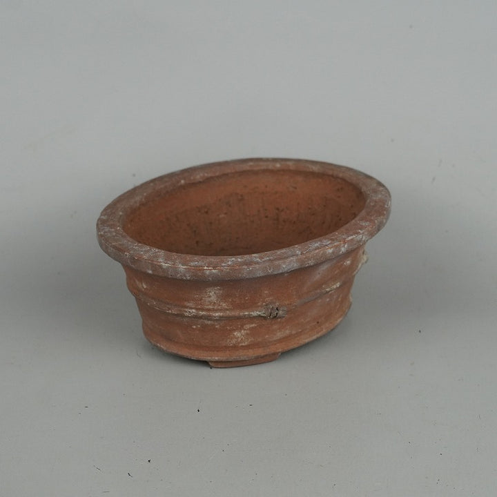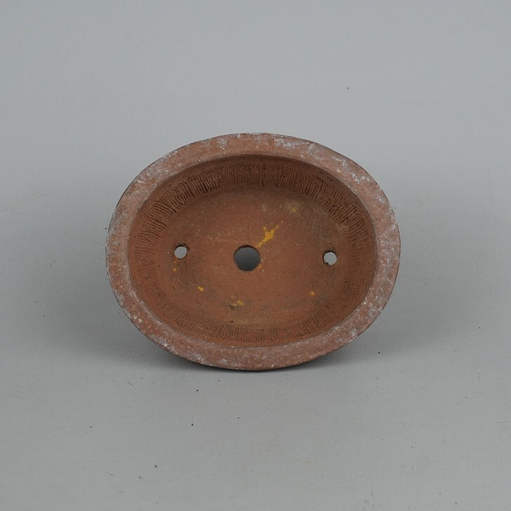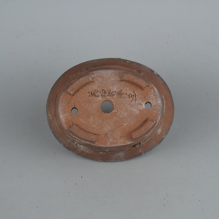 盆栽鉢 秀峰 義村秀峰 小型 長辺 約14cm 楕円鉢 竹節 中帯 泥物 現品 中古鉢 品名秀峰...