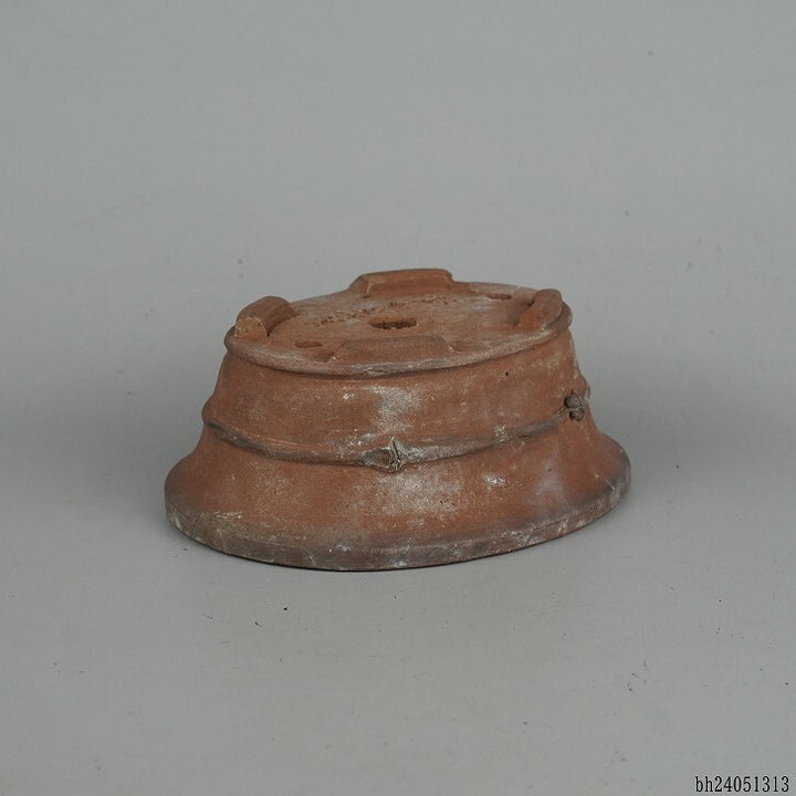 中古盆栽鉢 秀峰 義村秀峰 小型 長辺 約14cm 楕円鉢 竹節 中帯 泥物 中古鉢 k1198404196