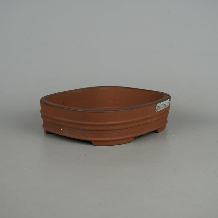 中古盆栽鉢 羽城 小型 長辺 約 15.5cm 長方鉢 外縁 撫角 中帯 泥物 中古鉢 c1198405395