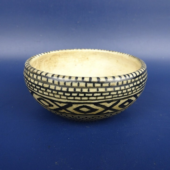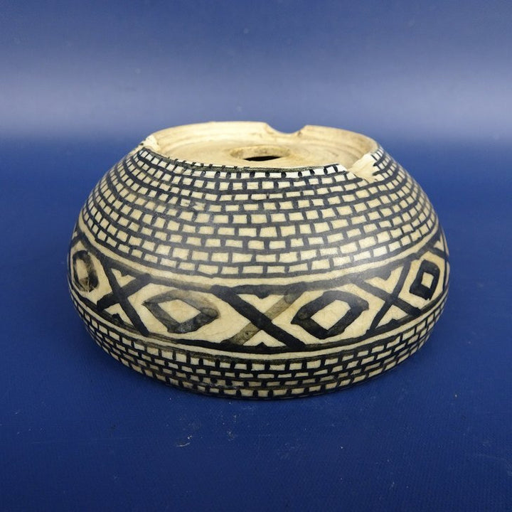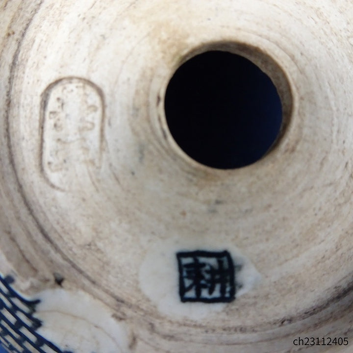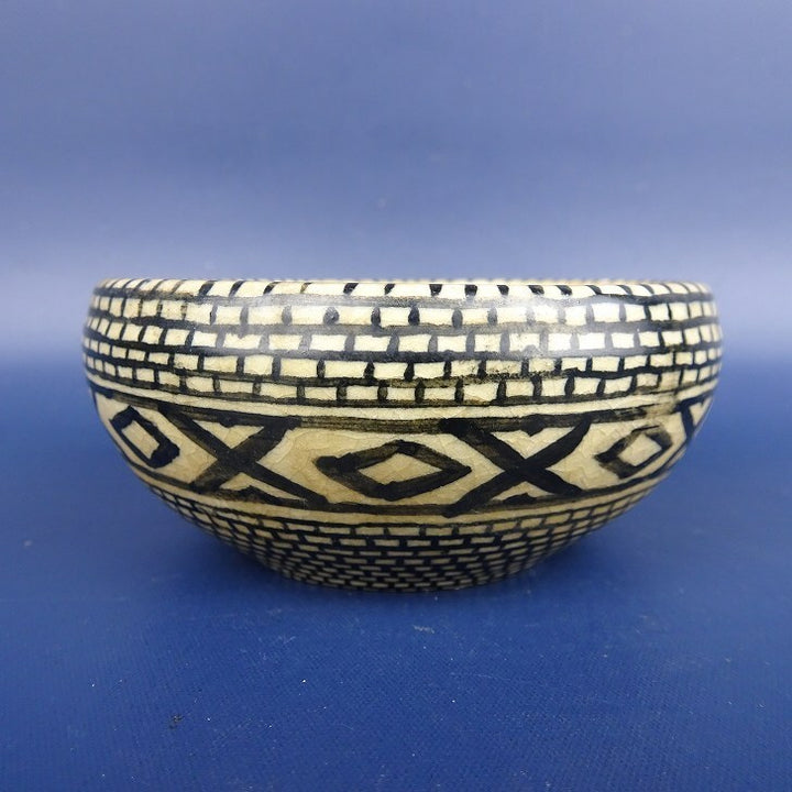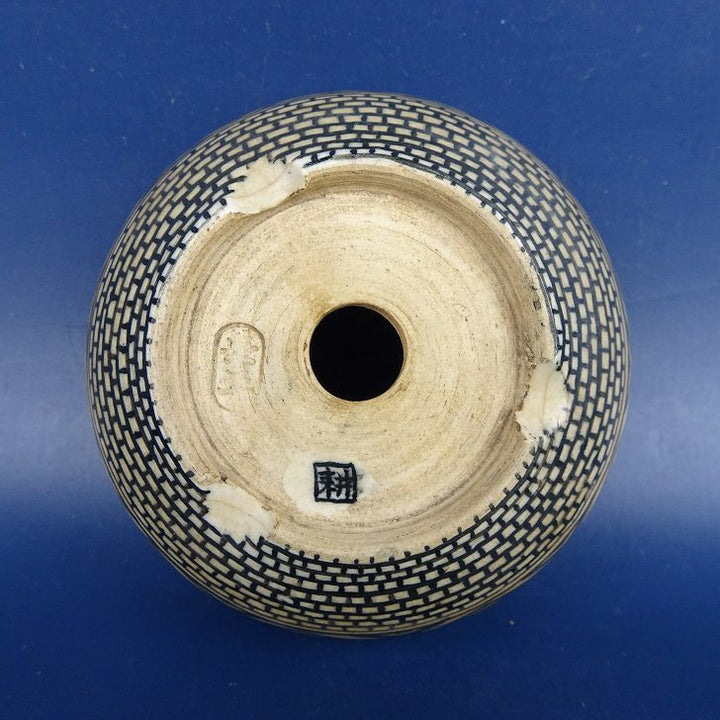 中古盆栽鉢 耕 w落款 長辺 約8cm 丸鉢 染付 幾何学模様 中古鉢 c1198408532