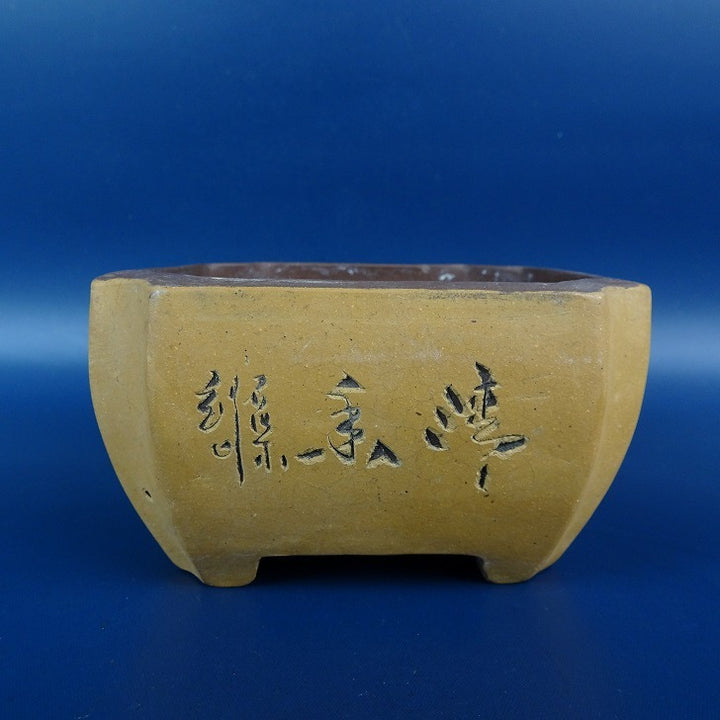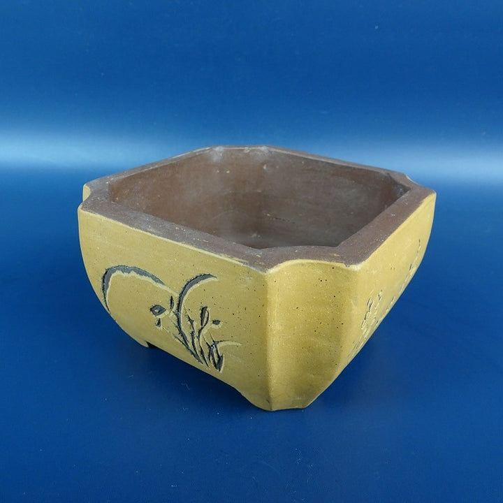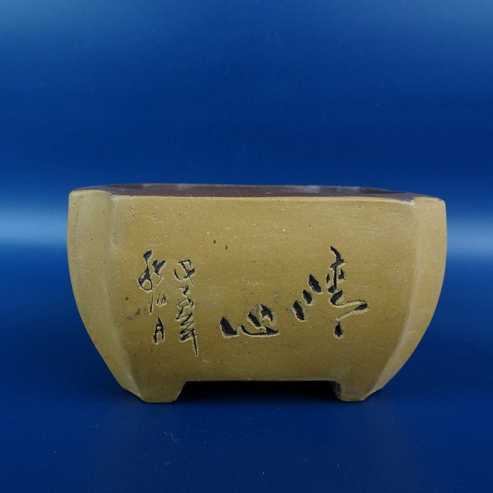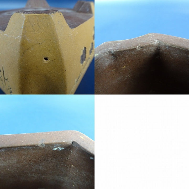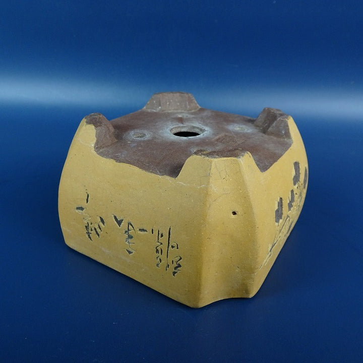 中古盆栽鉢 荊溪?古 小型 長辺 約10cm 正方鉢 隅切 釘彫 花 植物 釉薬 中古鉢 l1198410779