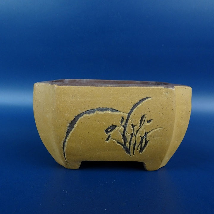 【中古】盆栽鉢 荊溪?古 小型 長辺 約10cm 正方鉢 隅切 釘彫 釉薬 現品 中古鉢 品名荊溪?古...