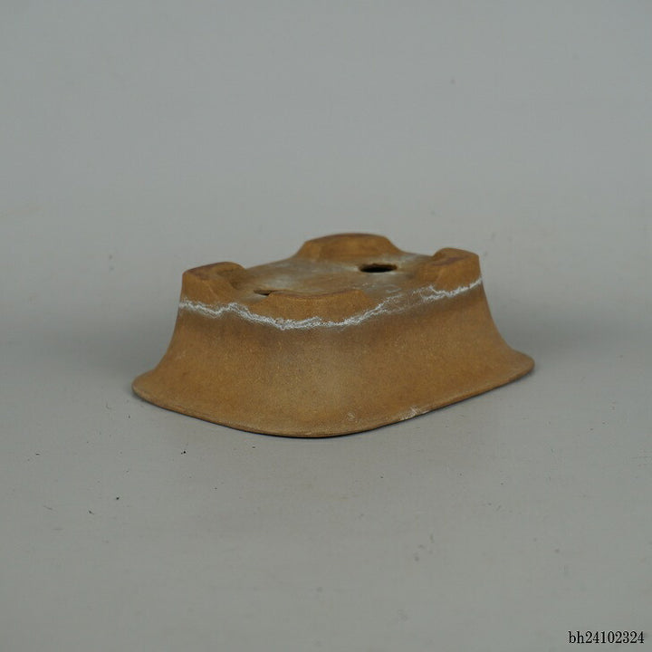 中古盆栽鉢 萬留平 小型 長辺 約12.8cm 長方鉢 泥物 中古鉢 x1198408148