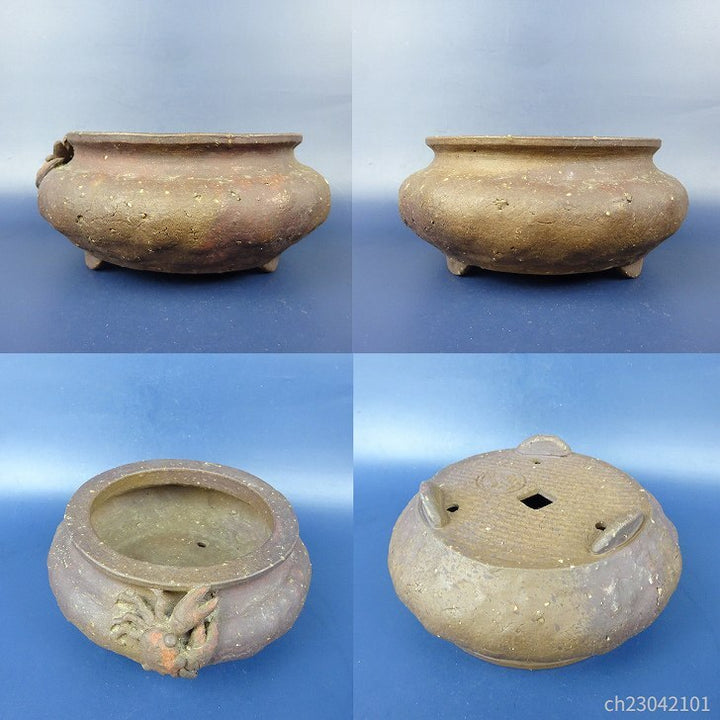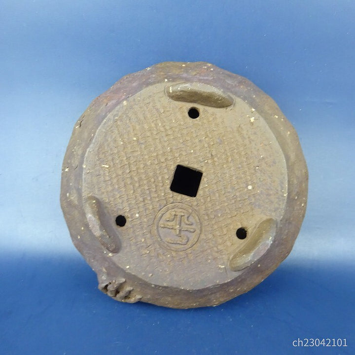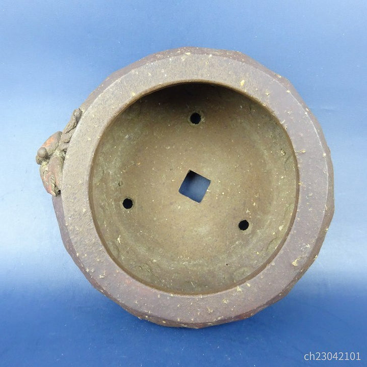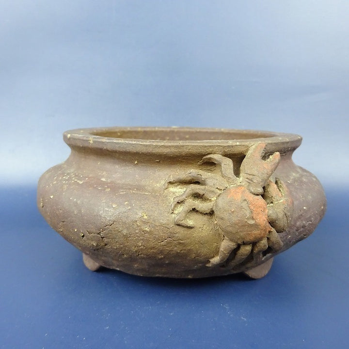 中古盆栽鉢 萬留平 小型 長辺 約14.5cm 丸鉢 蟹 泥物 中古鉢 f1198412067