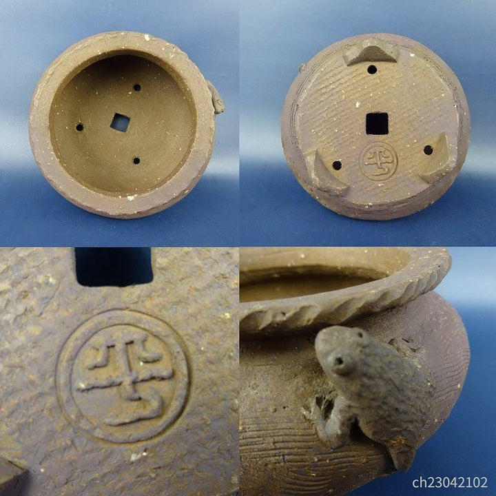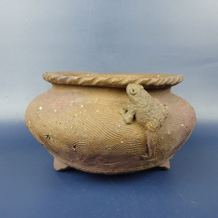 【中古】盆栽鉢 萬留平 小型 長辺 約14cm 丸鉢 蛙 泥物 現品 中古鉢 商 品 名萬留平 サ イ ズ高さ 約7.5センチ 横幅 約14センチ 奥行 約14センチ...
