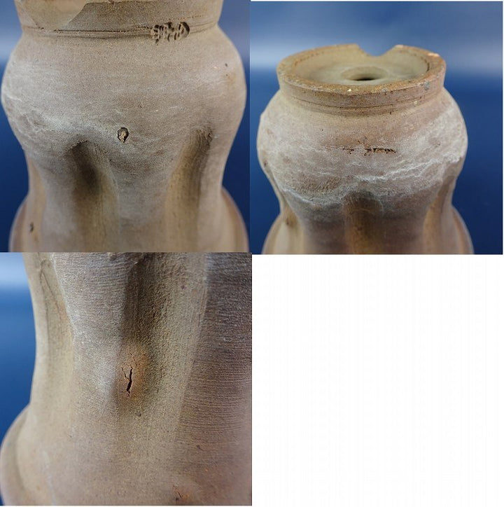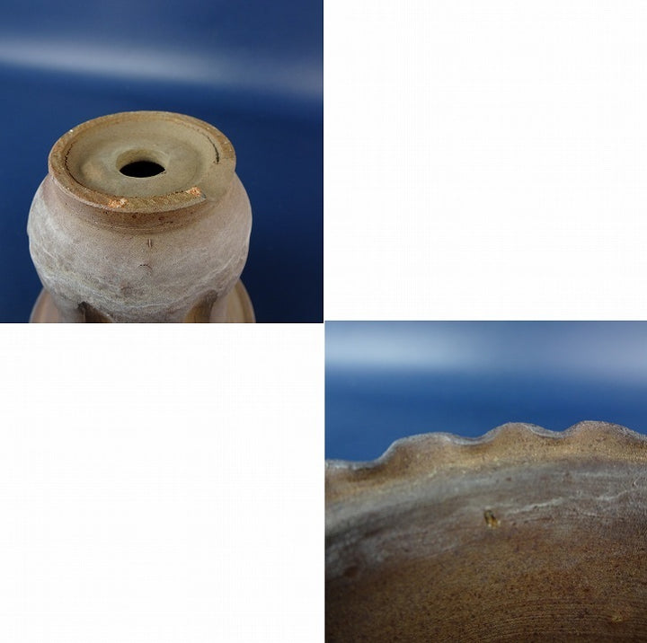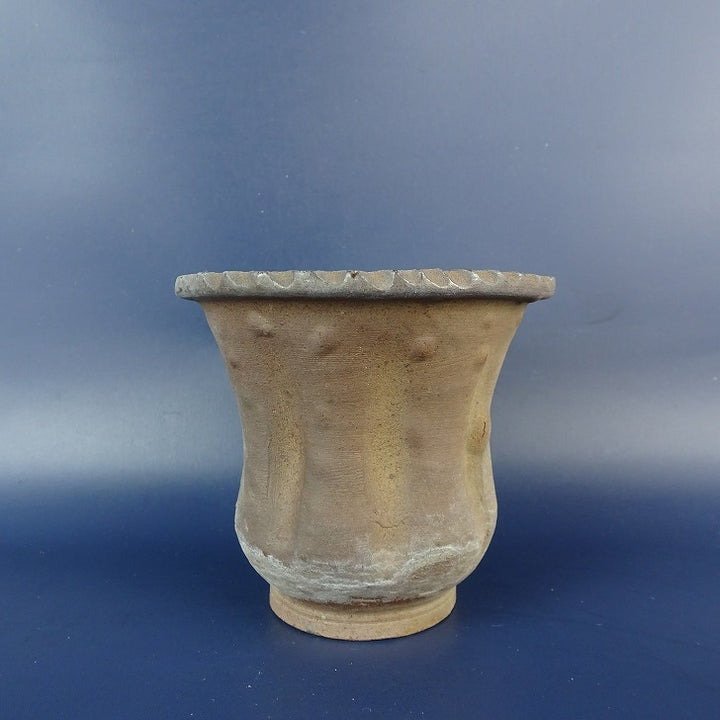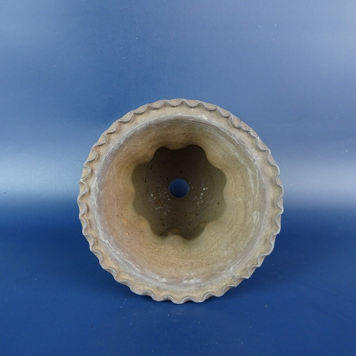 【中古】盆栽鉢 落款あり 小型 長辺 約 10cm 丸鉢 外縁 泥鉢 現品 中古鉢 品名落款あり...