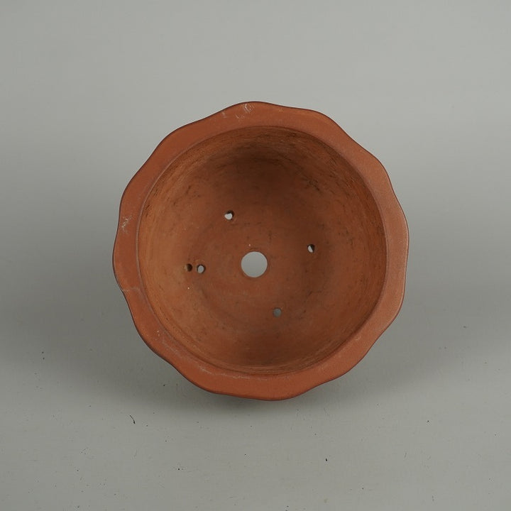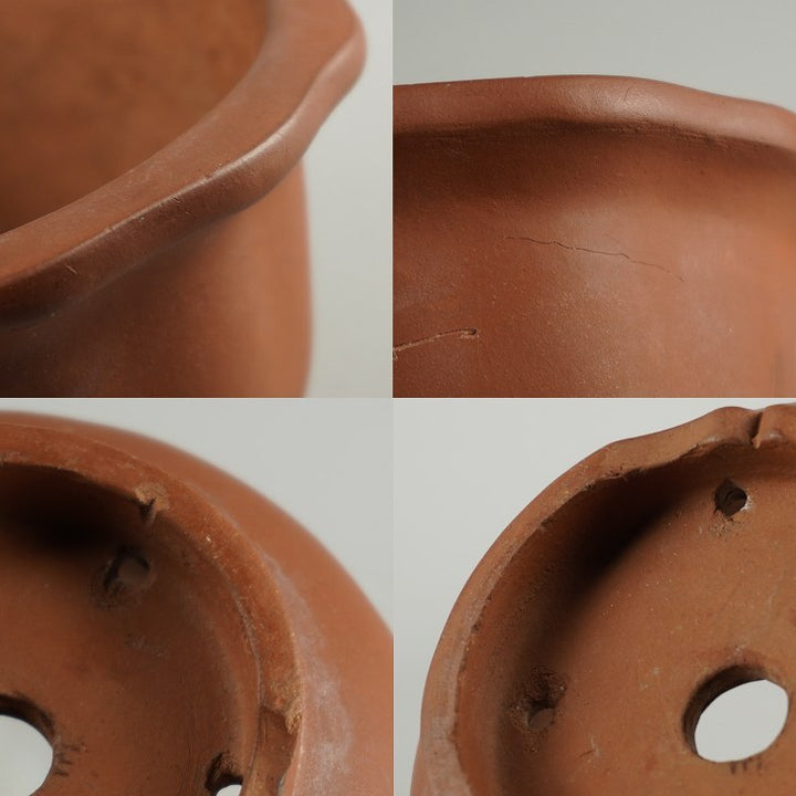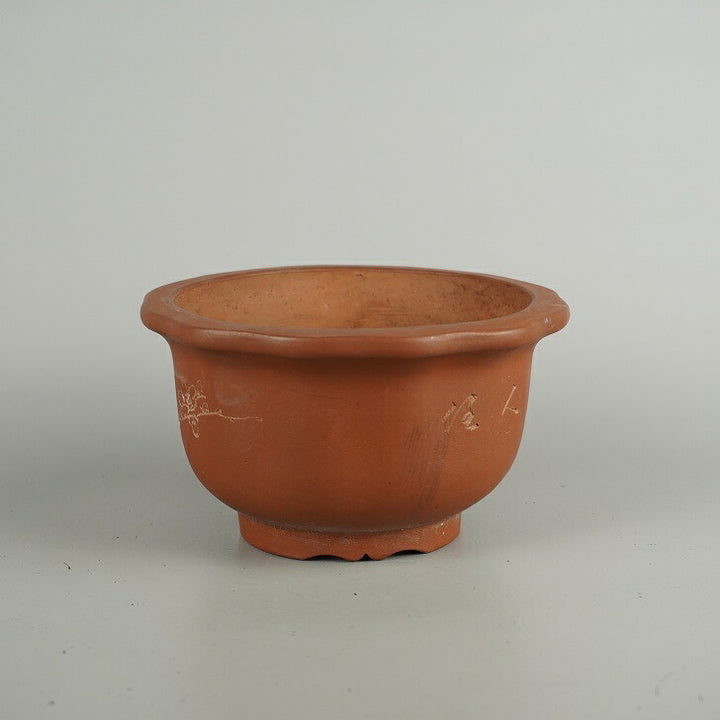 中古盆栽鉢 落款あり 小型 長辺 約 14.7cm 輪花鉢 外縁 彫入 梅 花 漢文 泥物 中国鉢 鑑賞 観賞用 中古鉢 d1209292675