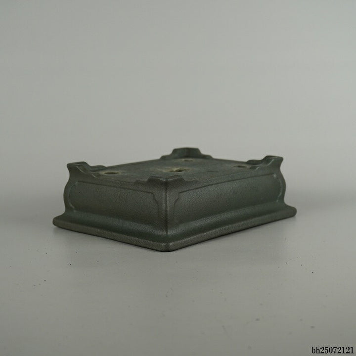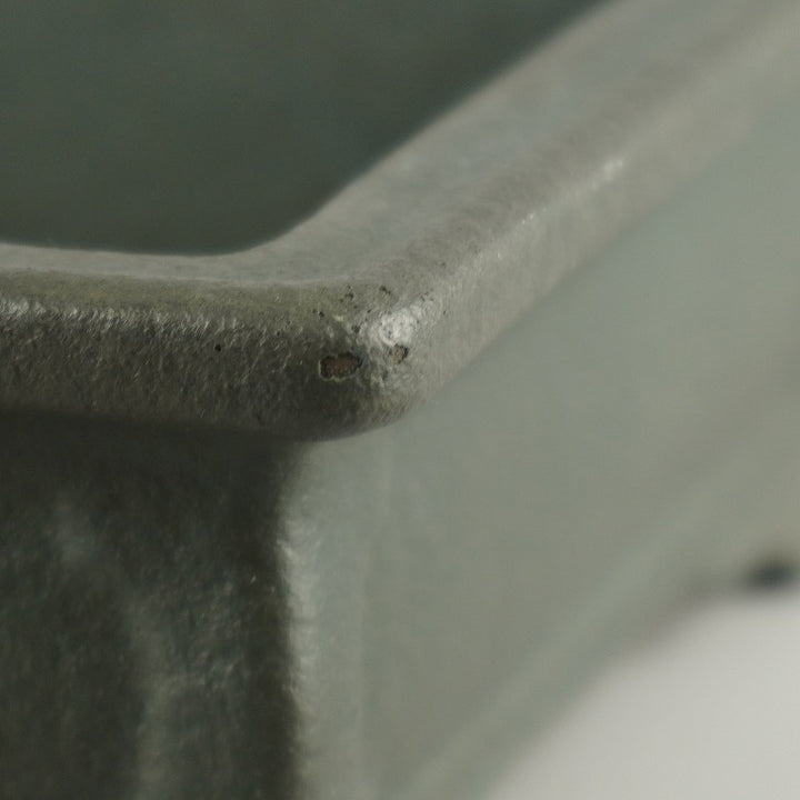 盆栽鉢 落款あり 小型 長辺 約 19cm 長方鉢 外縁 窓入 泥物 現品 中古鉢 品名落款あり...
