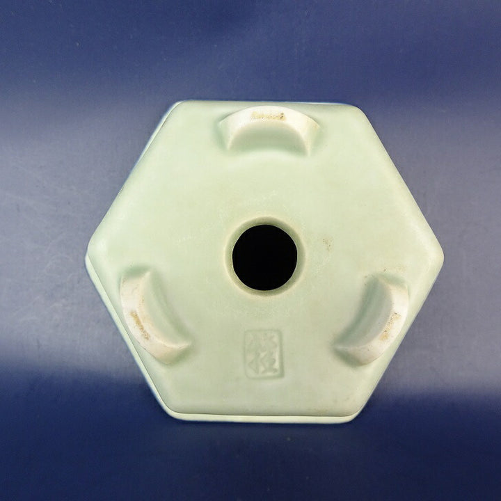 【中古】盆栽鉢 落款あり 小型 長辺 約13.5cm 六角鉢 外縁 絵鉢 釉薬 花 蝶 中国鉢 現品 中古鉢 品名落款あり...