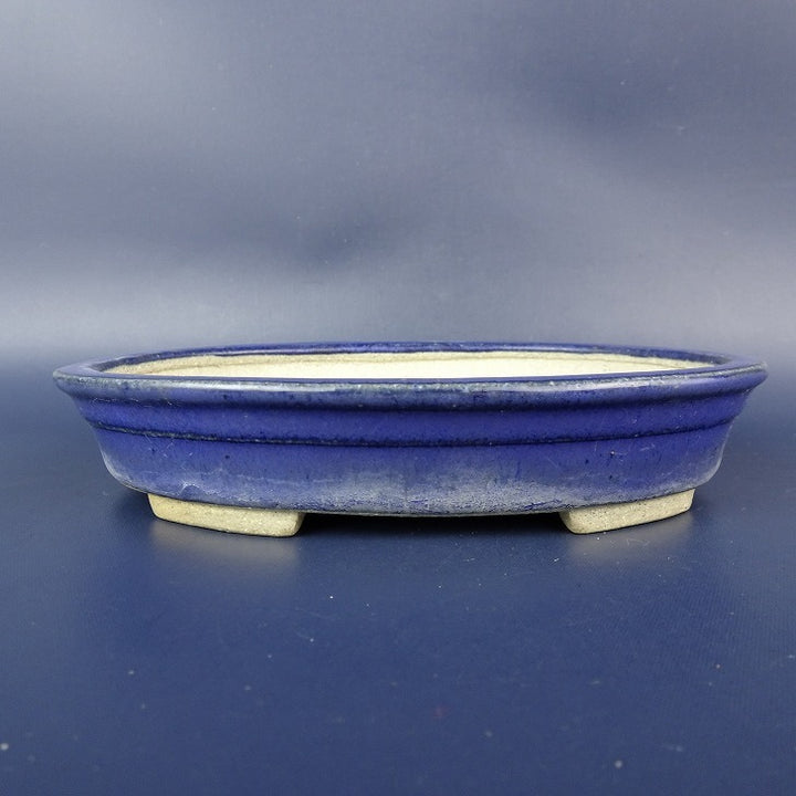 中古盆栽鉢 落款あり 小型 長辺 約14.3cm 楕円鉢 外縁 中帯 釉薬 中古鉢 k1198413310