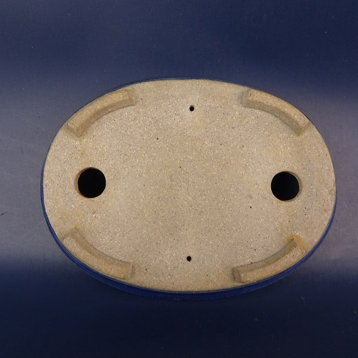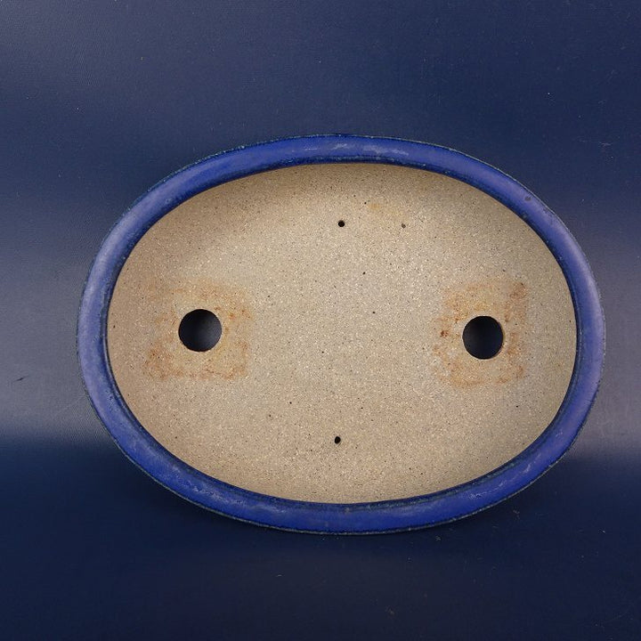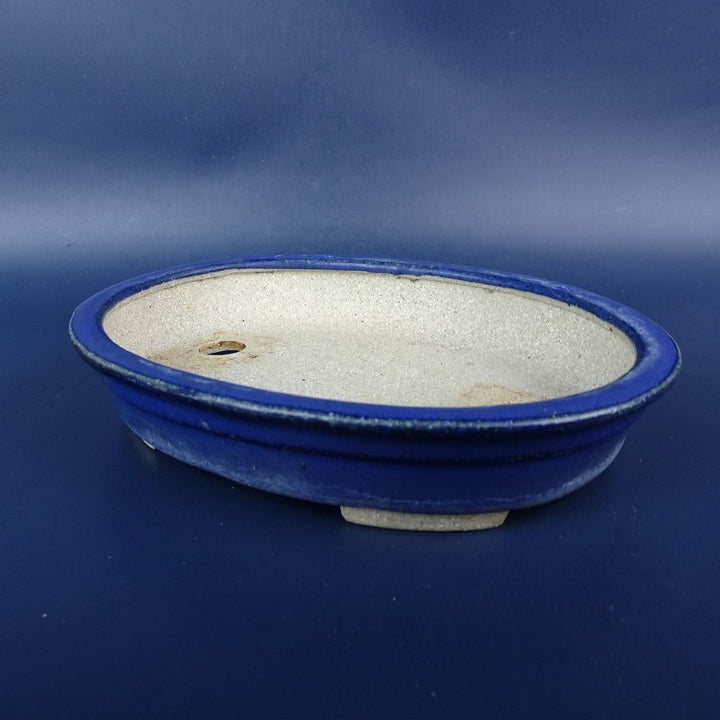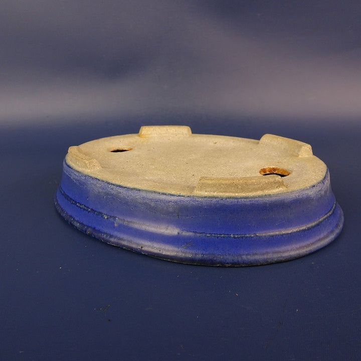 【中古】盆栽鉢 落款あり 小型 長辺 約14.3cm 楕円鉢 外縁 上帯 釉薬 現品 中古鉢 品名落款あり...