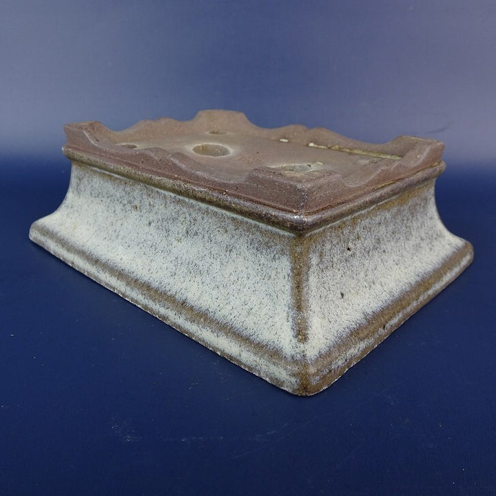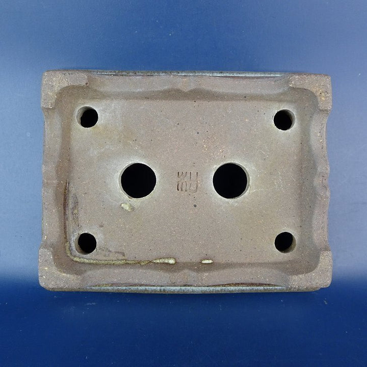 中古盆栽鉢 落款あり 小型 長辺 約14.5cm 長方鉢 外縁 釉薬 中古鉢 f1198411024
