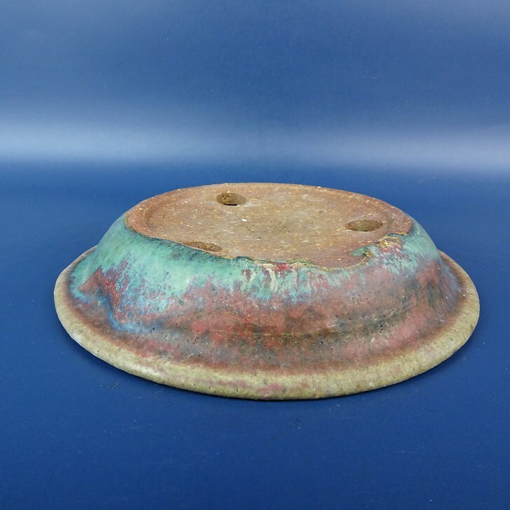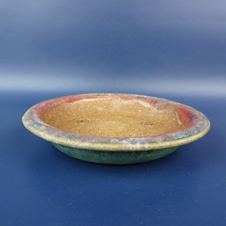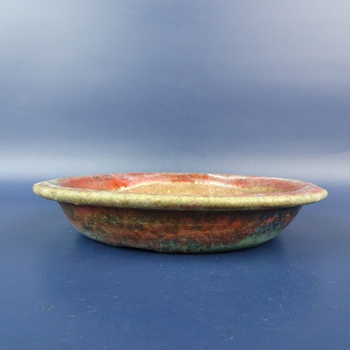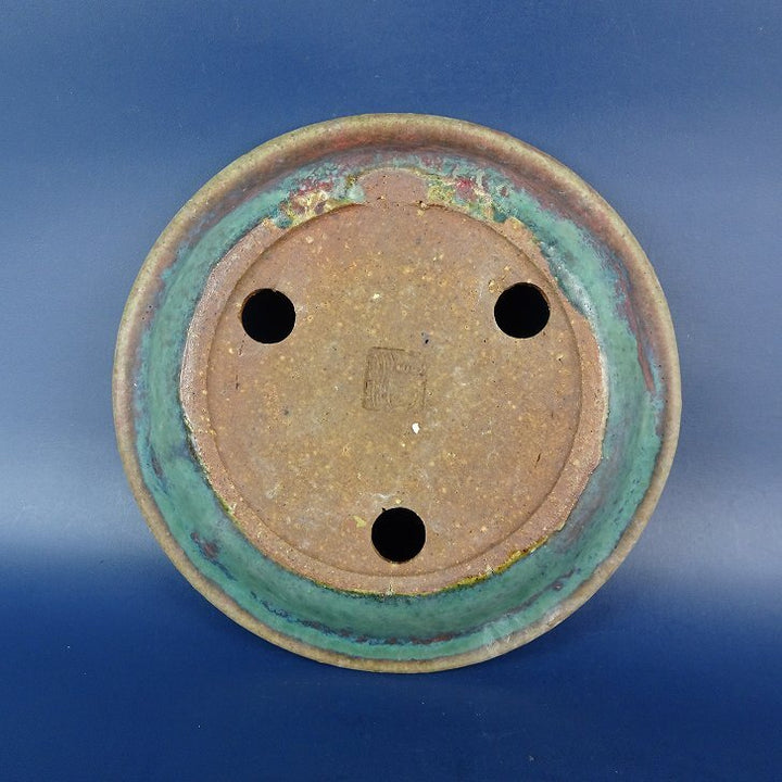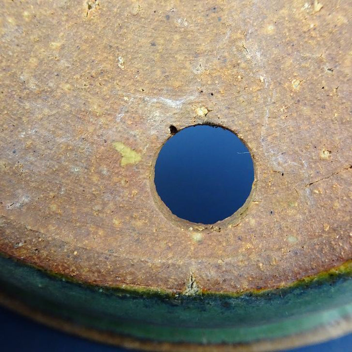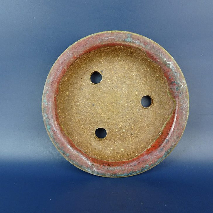 中古盆栽鉢 落款あり 小型 長辺 約15.6cm 丸鉢 外縁 釉薬 中古鉢 w1198414705