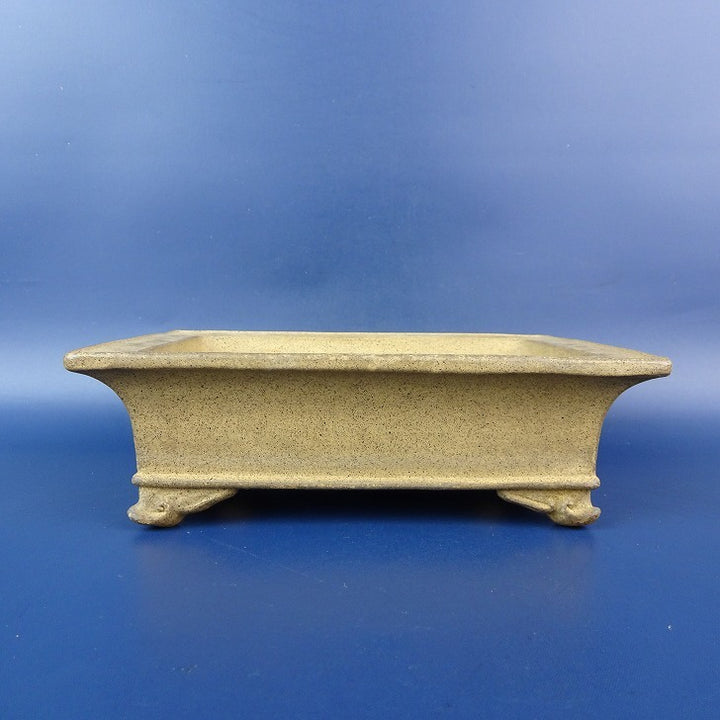 中古盆栽鉢 落款あり 小型 長辺 約17cm 長方鉢 外縁 下帯 泥物 中古鉢 f1198408343