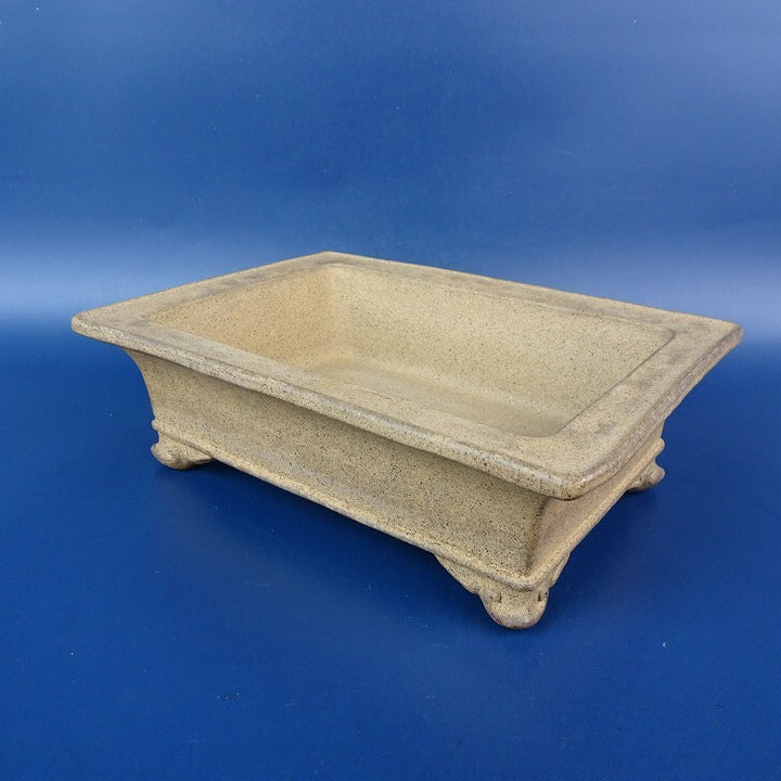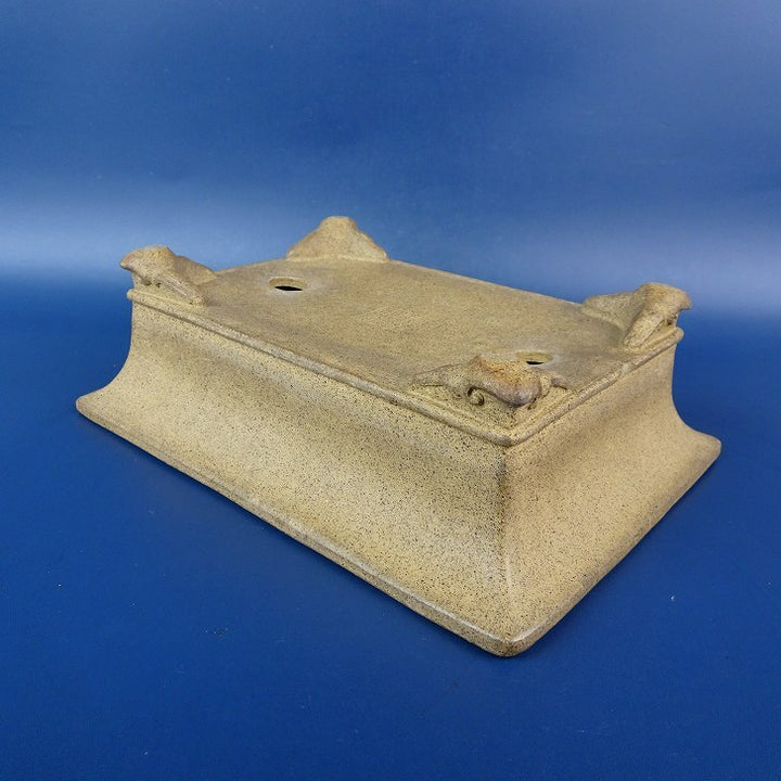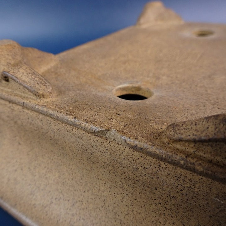 【中古】盆栽鉢 落款あり 小型 長辺 約17cm 長方鉢 外縁 下帯 泥物 現品 中古鉢 品名落款あり...