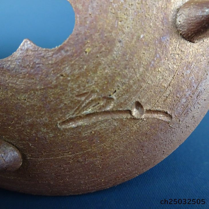【中古】盆栽鉢 落款あり 小鉢 長辺 約7.8cm 丸鉢 泥鉢 現品 中古鉢 品名落款あり...