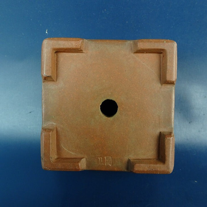 中古盆栽鉢 落款あり 小鉢 長辺 約 8cm 正方鉢 泥鉢 中古鉢 t1198410122