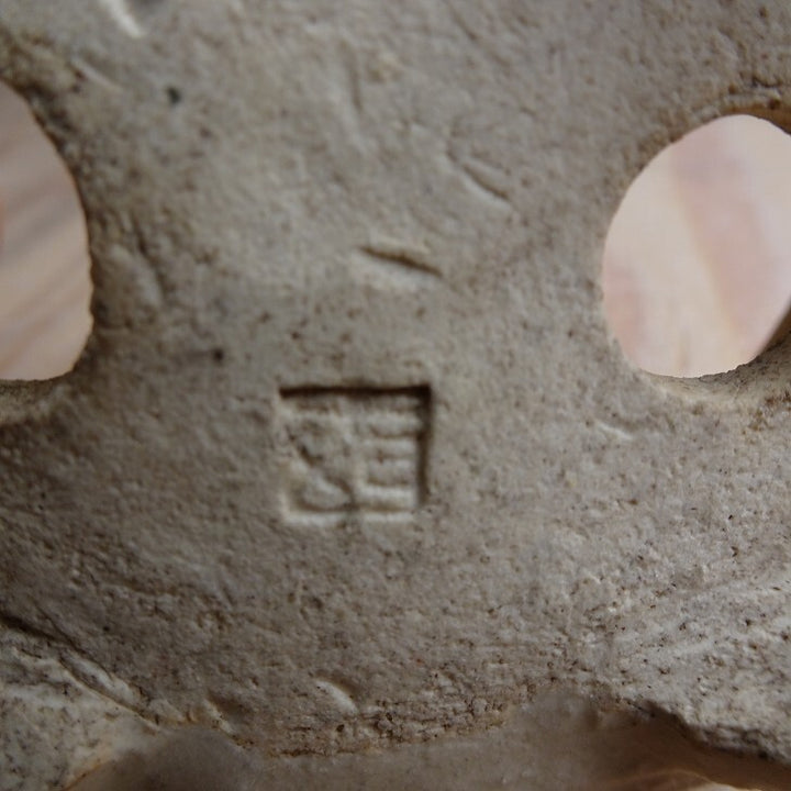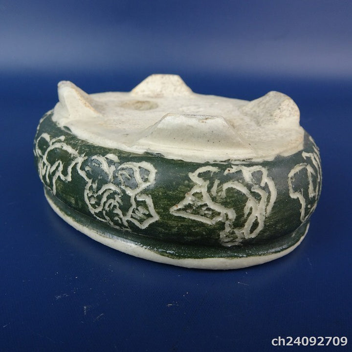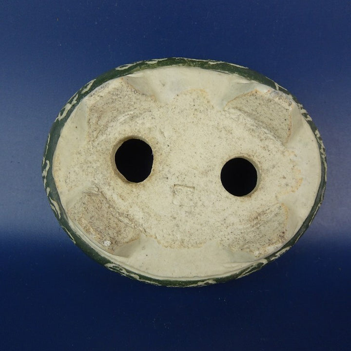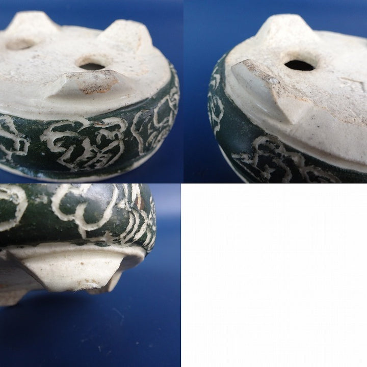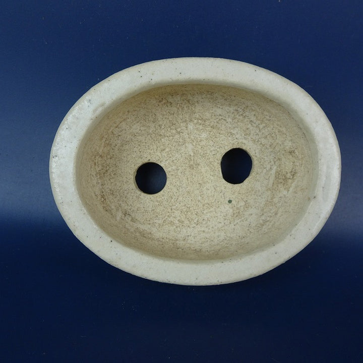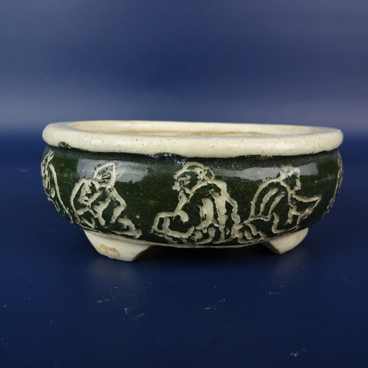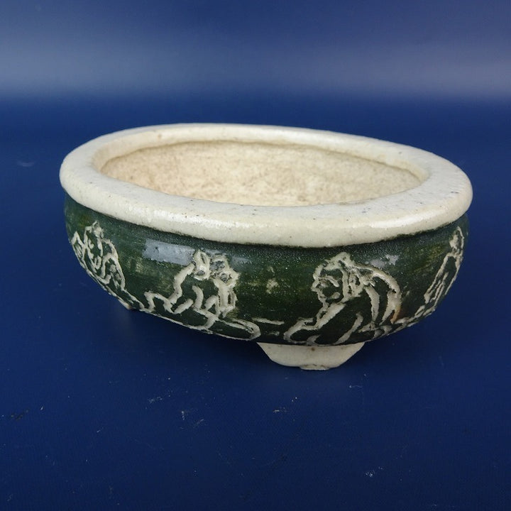 盆栽鉢 落款あり 小鉢 長辺 約9.7cm 楕円鉢 外縁 彫入 人物 釉薬 現品 中古鉢 品名落款あり...