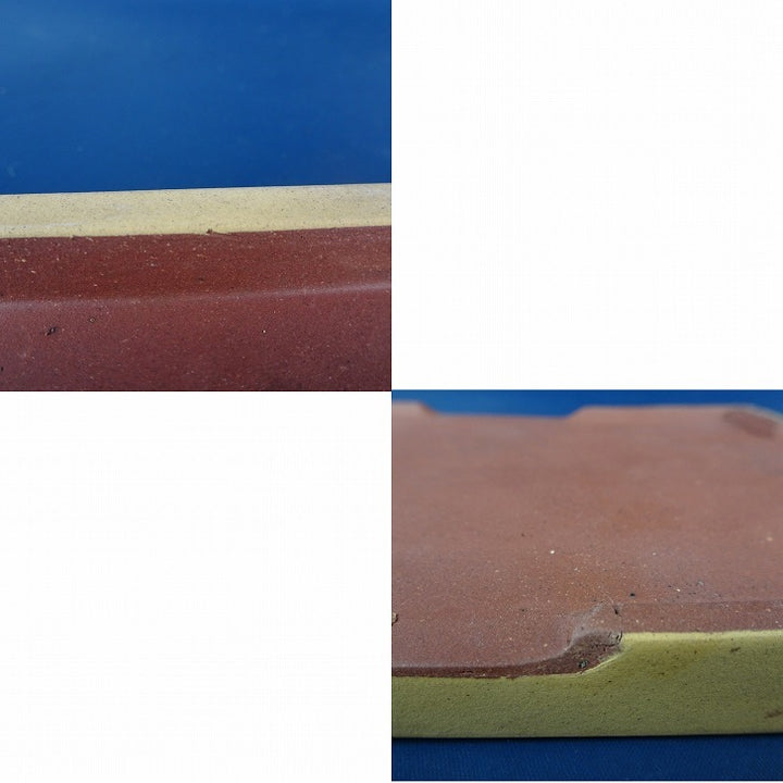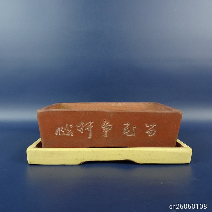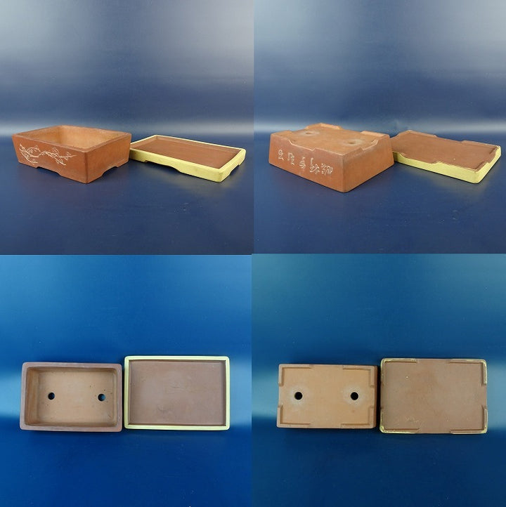 【中古】盆栽鉢 落款なし 受皿付 小型 長辺 約 18.3cm 長方鉢 釘彫 花 文字 釉薬 現品 中古鉢 品名落款なし(受皿付)...