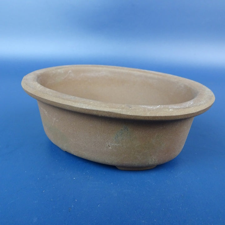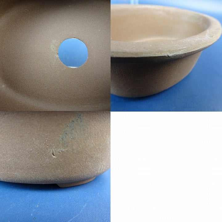 【中古】盆栽鉢 落款なし 小型 長辺 約 10.7cm 楕円鉢 外縁 泥物 現品 中古鉢 品名落款なし...