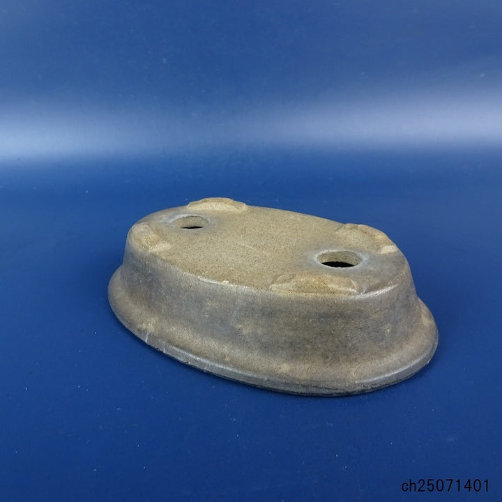 中古盆栽鉢 落款なし 小型 長辺 約 10.8cm 楕円鉢 外縁 釉薬 中古鉢 e1198417400