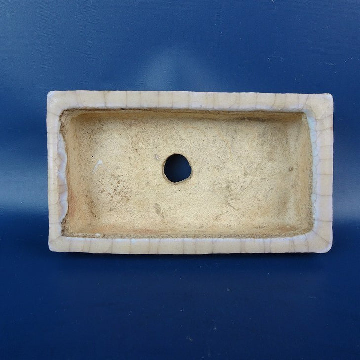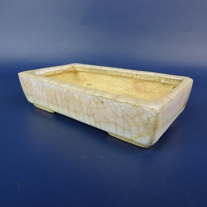 中古盆栽鉢 落款なし 小型 長辺 約 12.5cm 長方鉢 貫入 釉薬 中古鉢 s1198418952