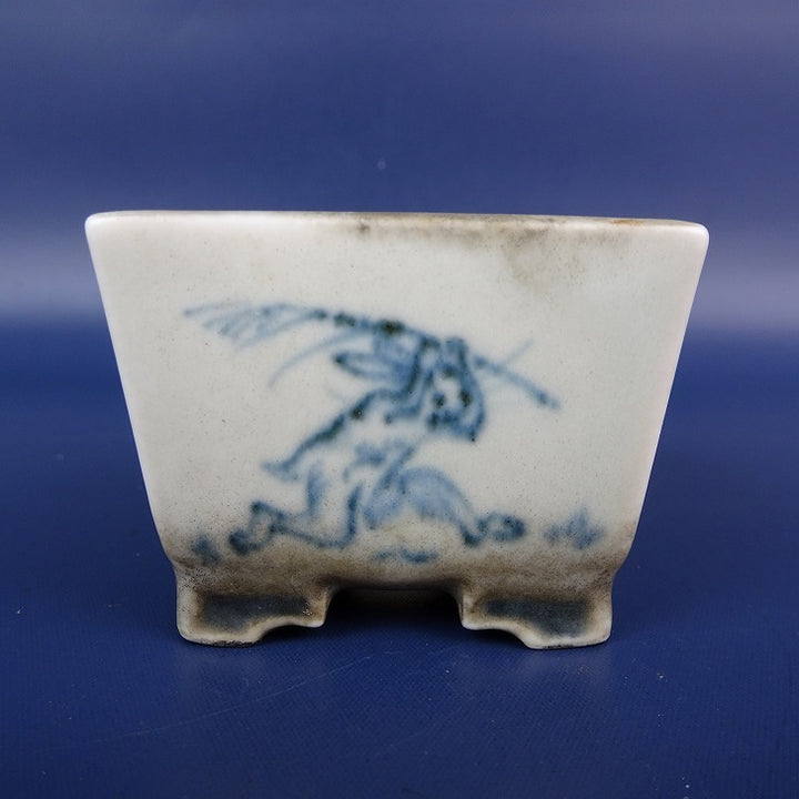 【中古】盆栽鉢 落款なし 小鉢 長辺 約5.3cm 正方鉢 染付 蛙 兎 箱付 現品 中古鉢 品名落款なし (箱付)...