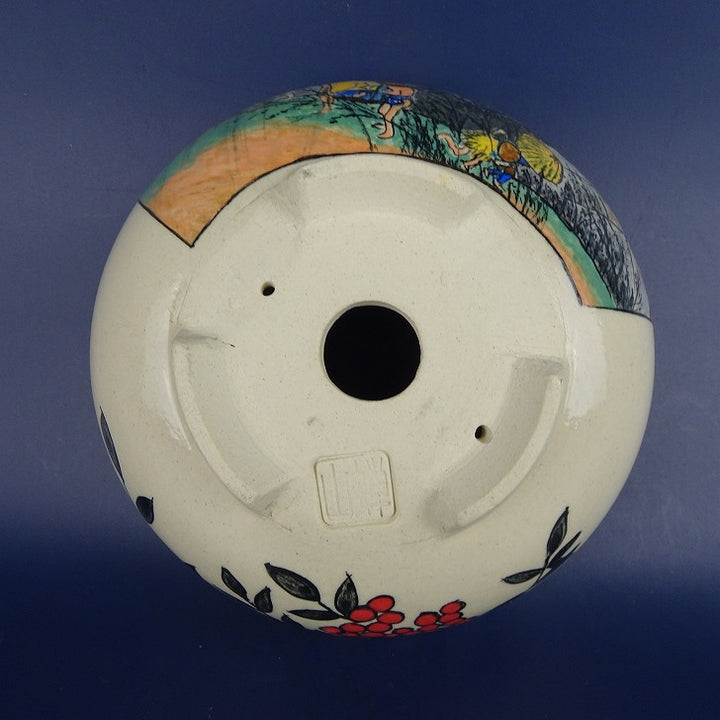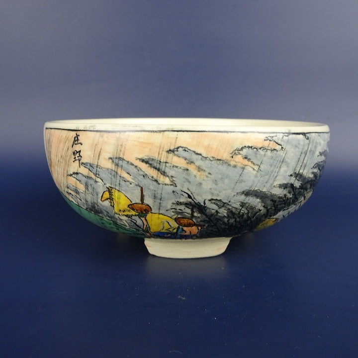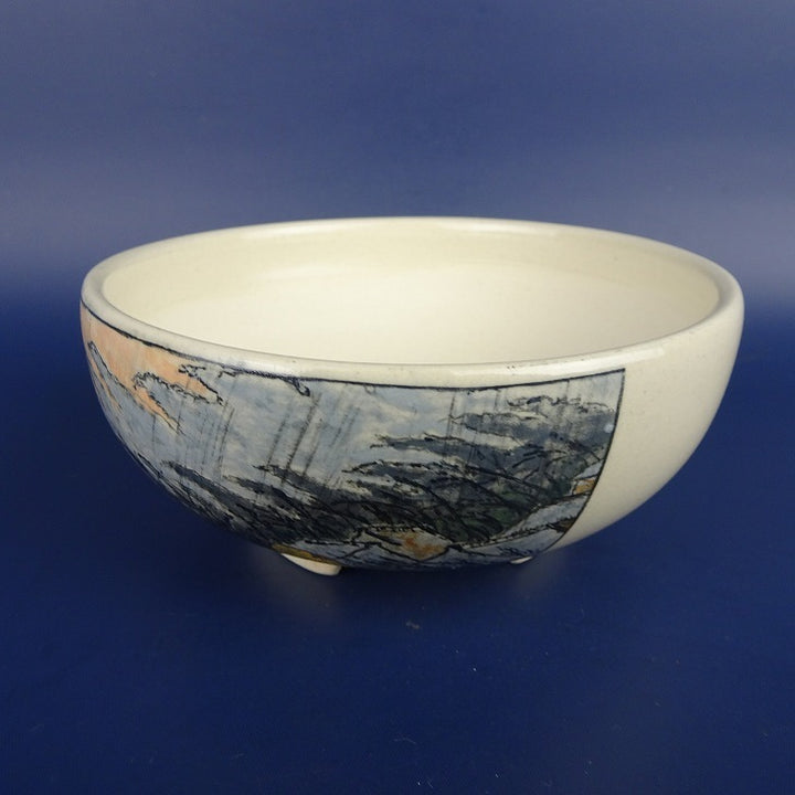 【中古】盆栽鉢 蝉山 小型 長辺 約13cm 丸鉢 色絵 風景画 現品 中古鉢 一つ一つ丁寧に作られた絵鉢です。...