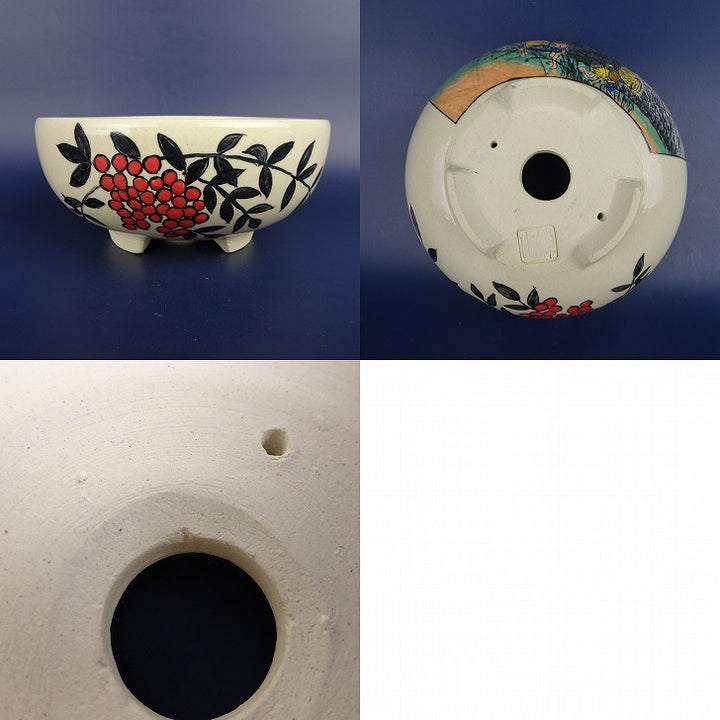 中古盆栽鉢 蝉山 小型 長辺 約13cm 丸鉢 色絵 風景画 庄野 植物 南天 観賞用 中古鉢 c1198411165
