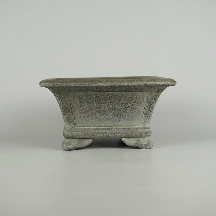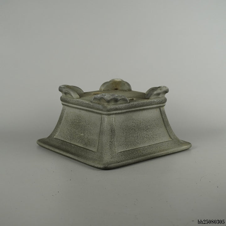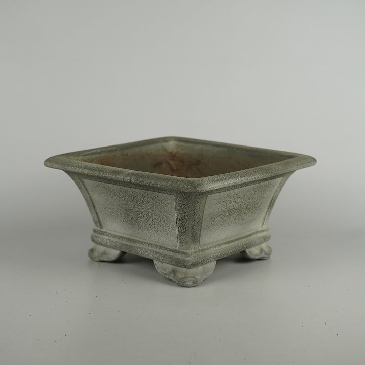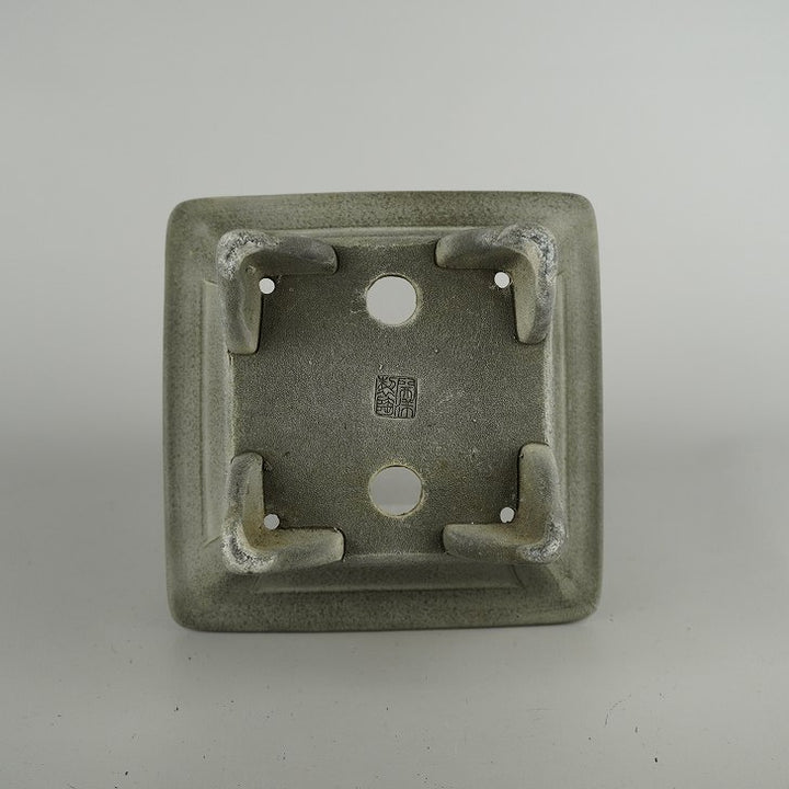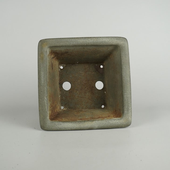 中古盆栽鉢 開祥黎陶 小型 長辺 約 18.5cm 正方鉢 外縁 雲足 窓入 泥物 中古鉢 j1209288998