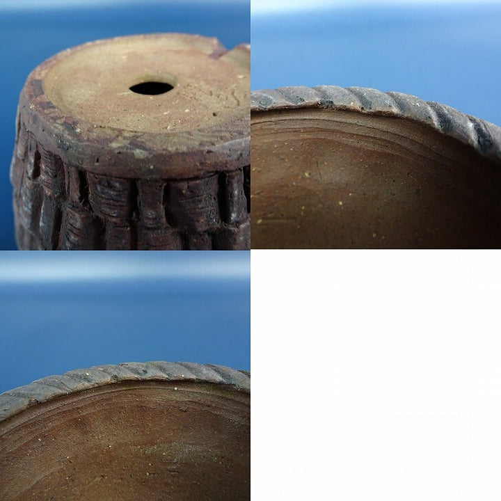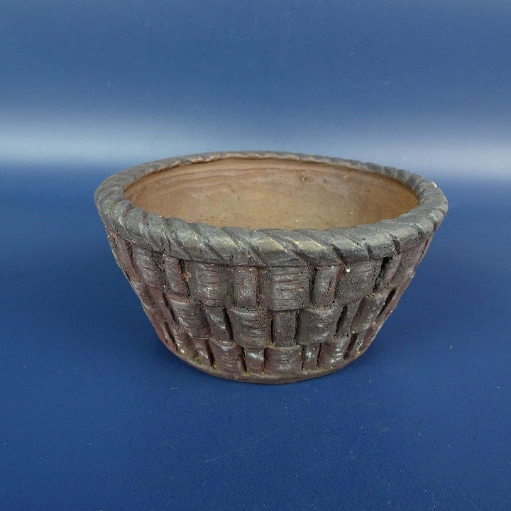 中古盆栽鉢 陶山 小鉢 長辺 約9cm 丸鉢 縄縁 泥鉢 中古鉢 w1198411570