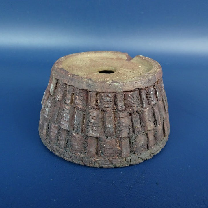 【中古】盆栽鉢 陶山 小鉢 長辺 約9cm 丸鉢 縄縁 泥鉢 現品 中古鉢 品名陶山...