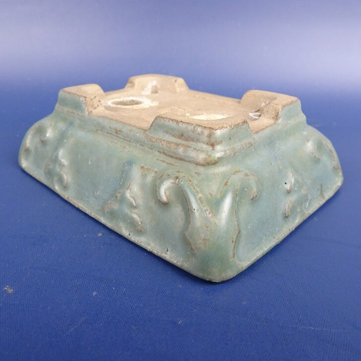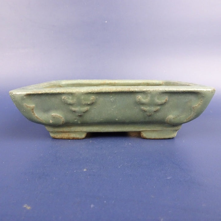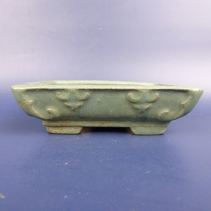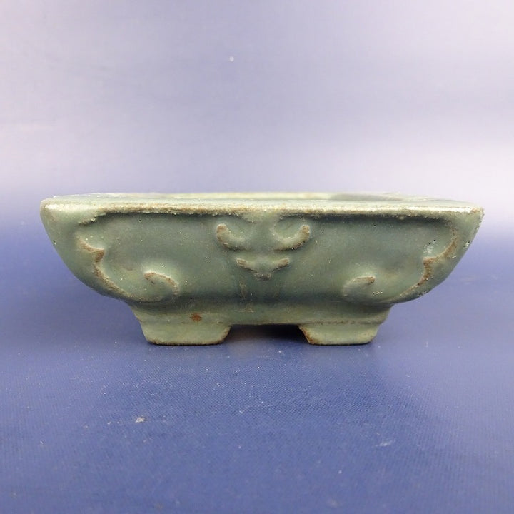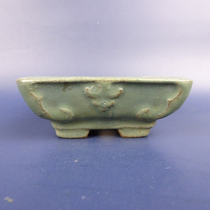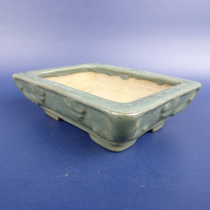 中古盆栽鉢 陶翠 小型 長辺 約11.5cm 長方鉢 浮彫 釉薬 中古鉢 d1198424718