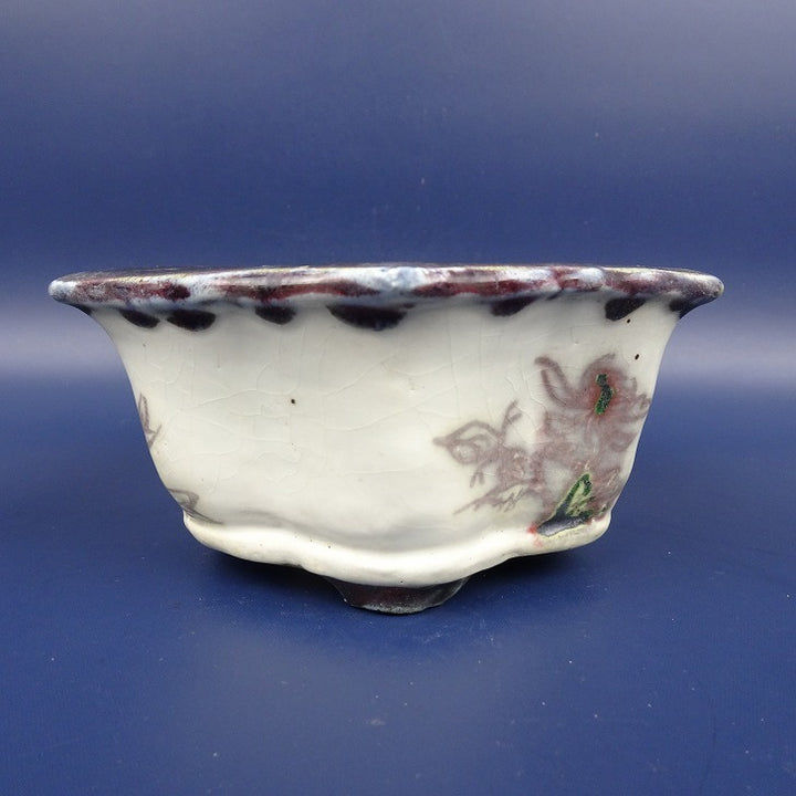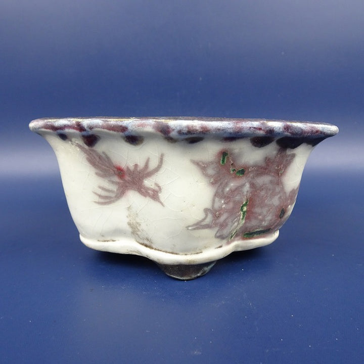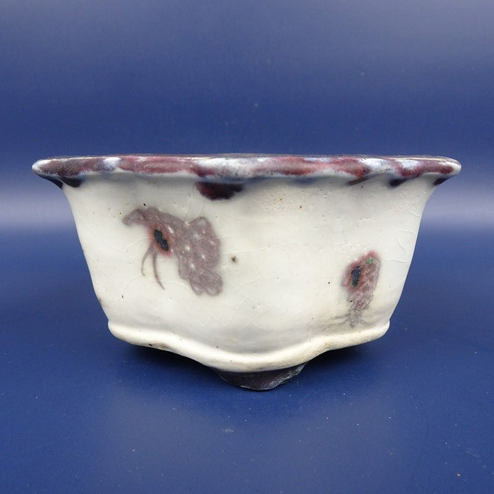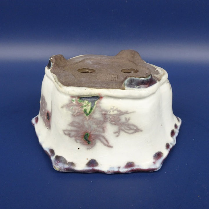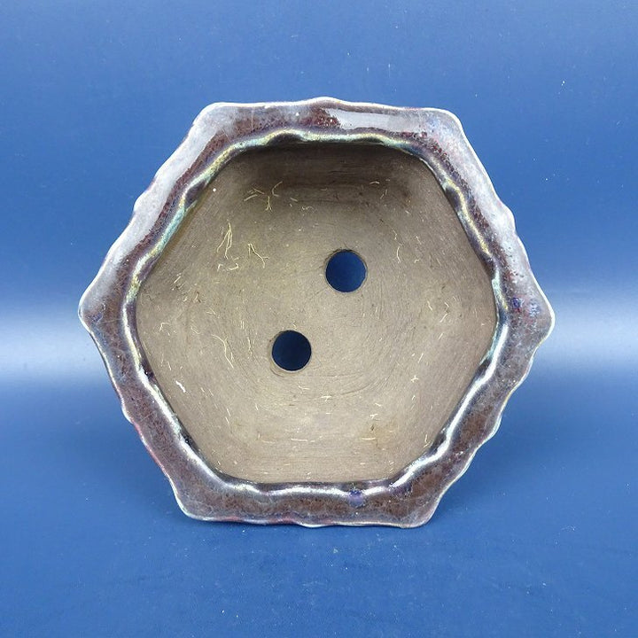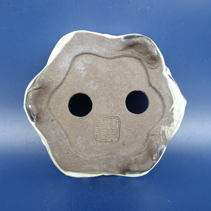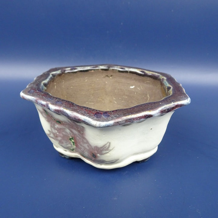 中古盆栽鉢 陶翠 小型 長辺 約12cm 六角鉢 外縁 鳥 釉薬 中古鉢 w1198406047