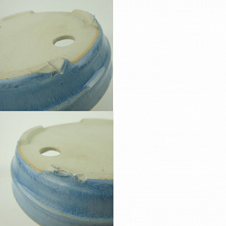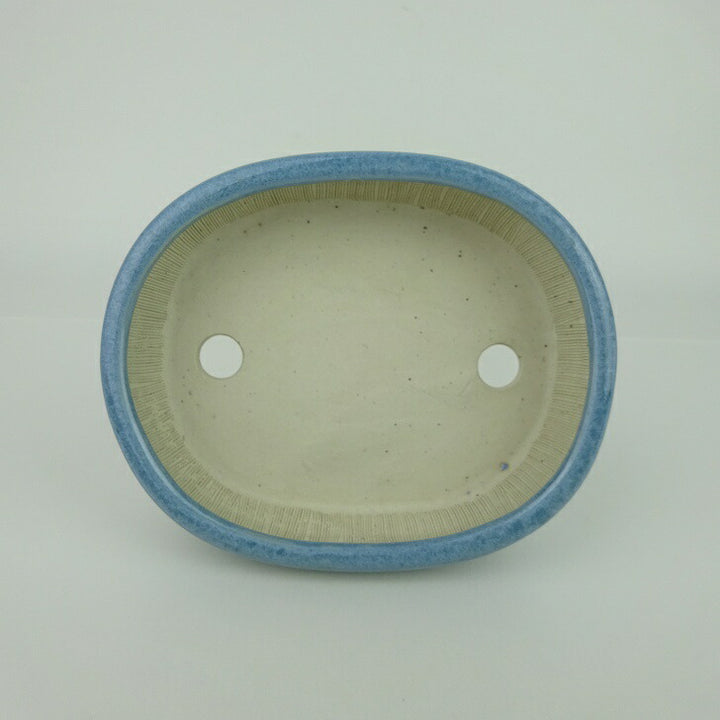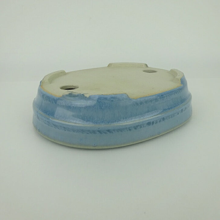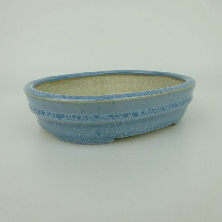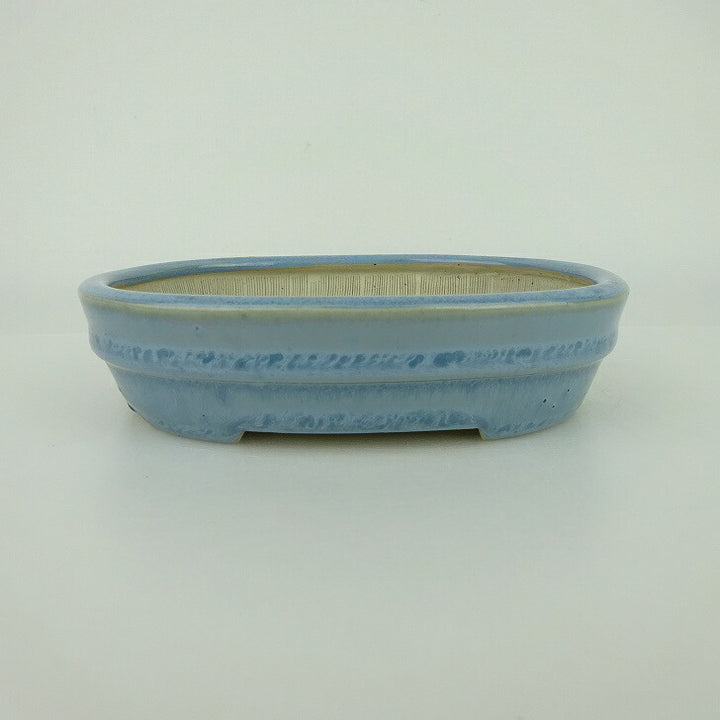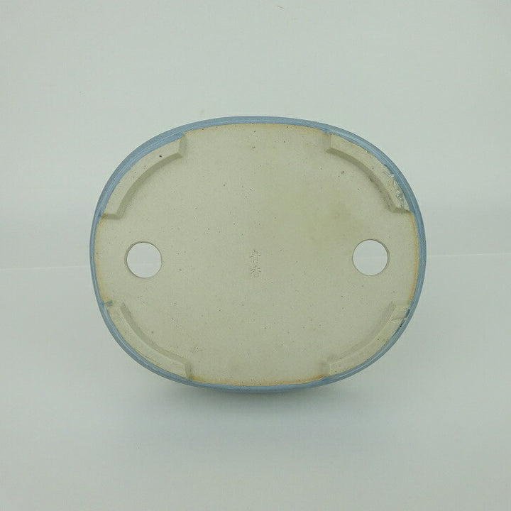 中古盆栽鉢 青香 小型 長辺 約 14.5cm 楕円鉢 中帯 釉薬 中古鉢 p1198416584