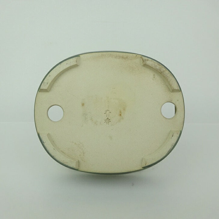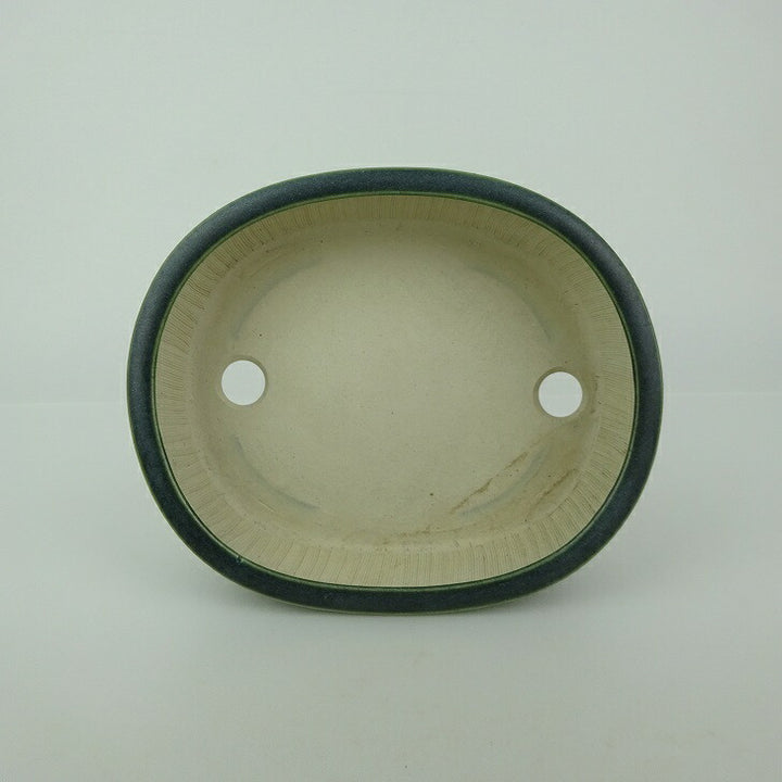 盆栽鉢 青香 小型 長辺 約 14.5cm 楕円 鉢 釉薬 現品 中古鉢 品名青香...