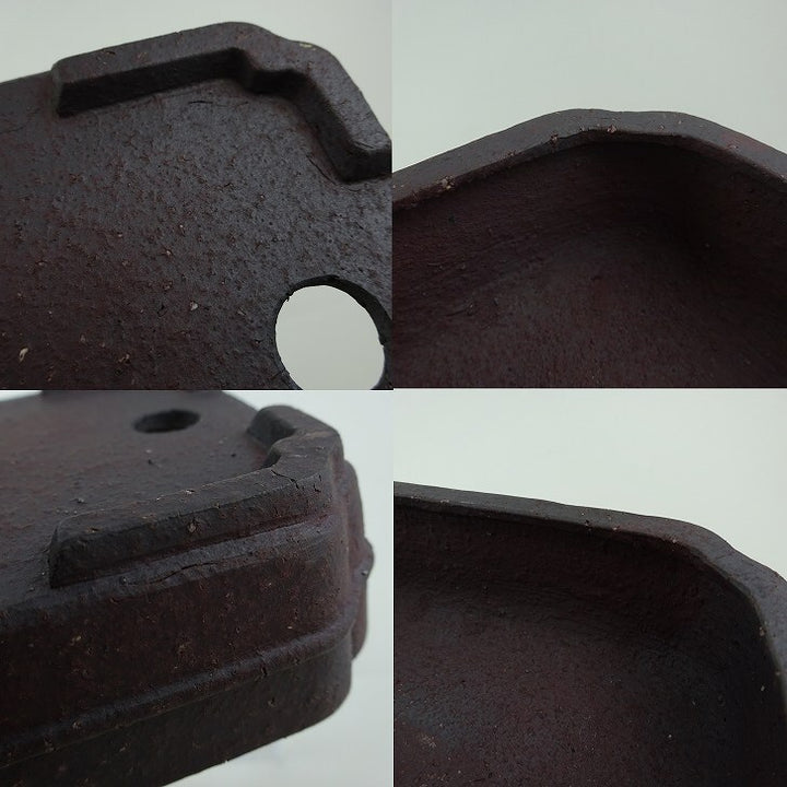 盆栽鉢 青香 小型 長辺 約 14.5cm 長方 鉢 隅入 中帯 泥物 現品 中古鉢 品名青香...