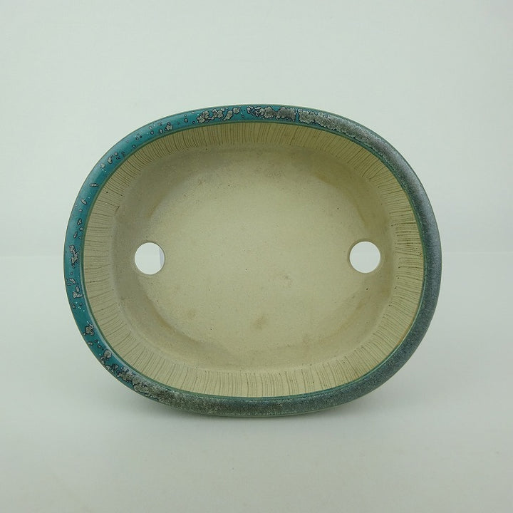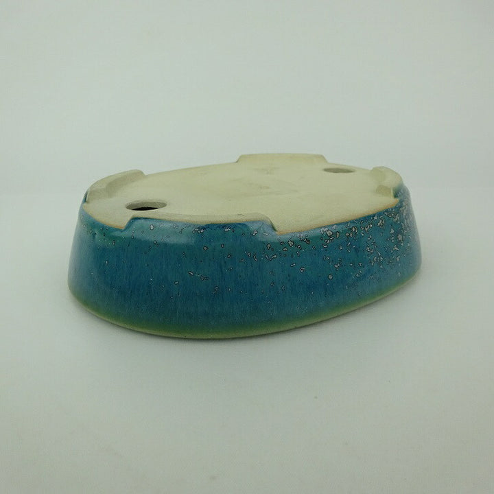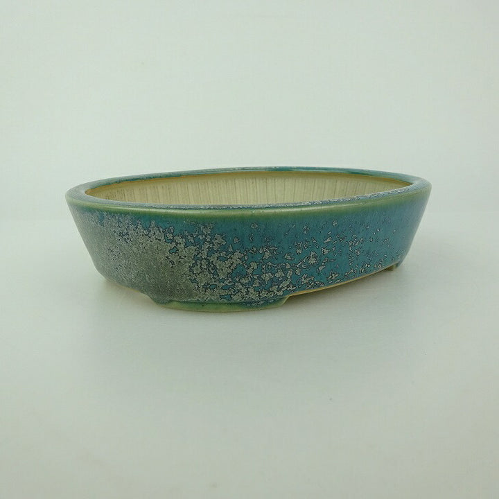 盆栽鉢 青香 小型 長辺 約 14.8cm 楕円 鉢 釉薬 現品 中古鉢 品名青香...