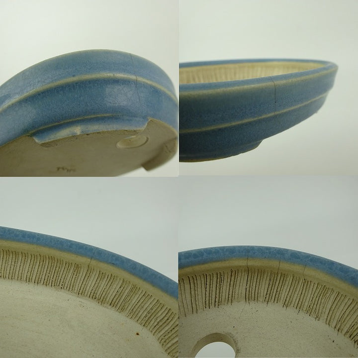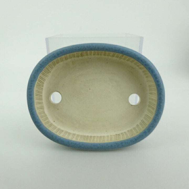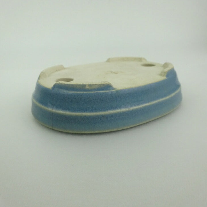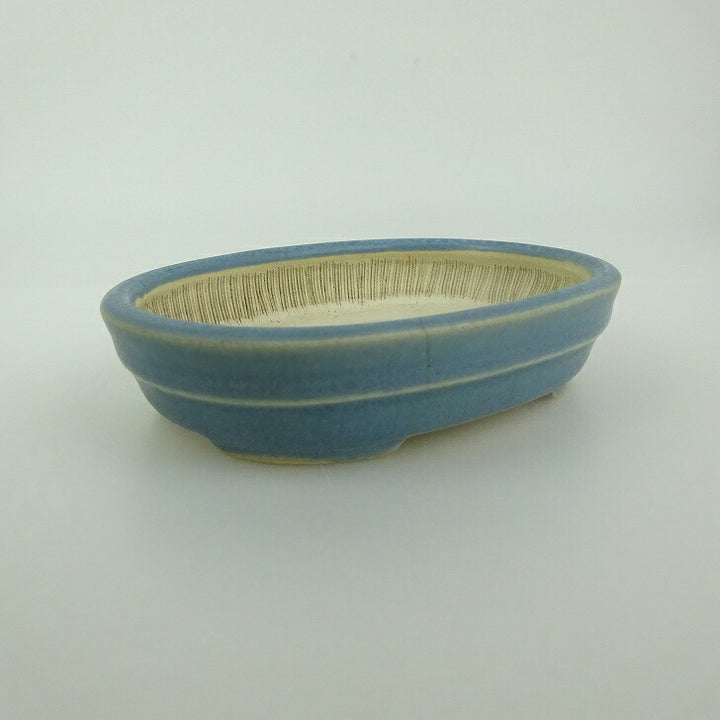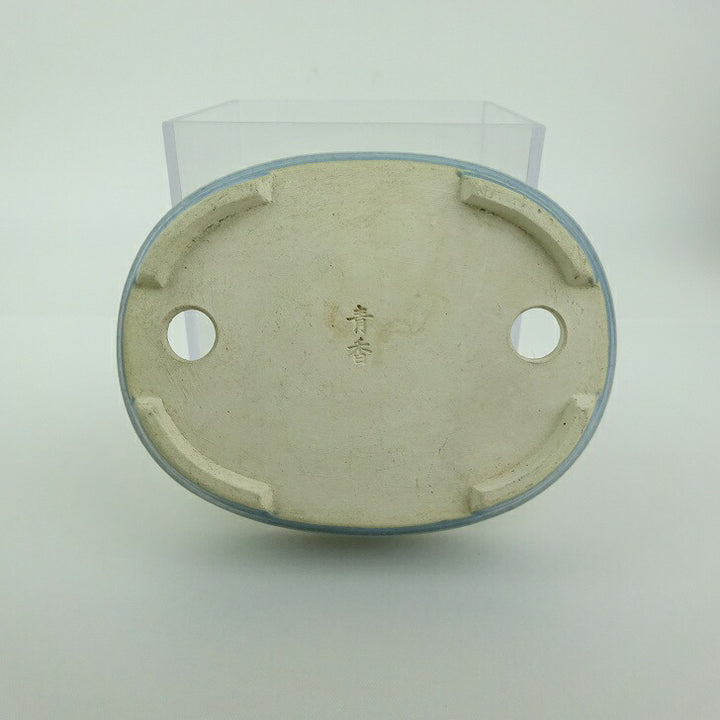 中古盆栽鉢 青香 小鉢 長辺 約10.1cm 楕円鉢 中帯 釉薬 中古鉢 b1198420074
