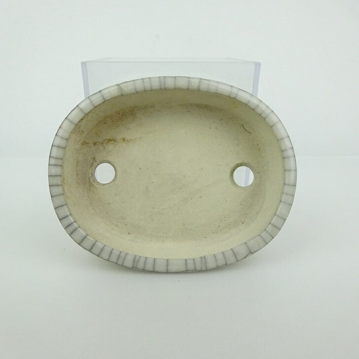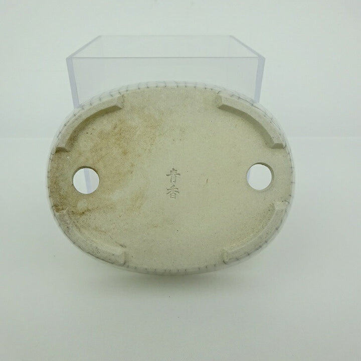 盆栽鉢 青香 小鉢 長辺 約 10.1cm 楕円 鉢 貫入 釉薬 現品 中古鉢 品名青香...