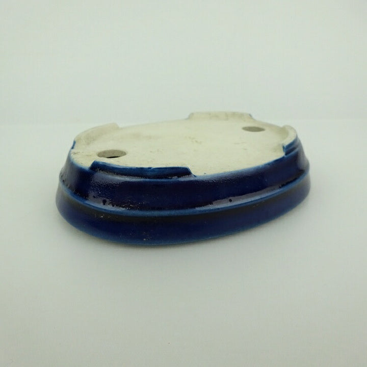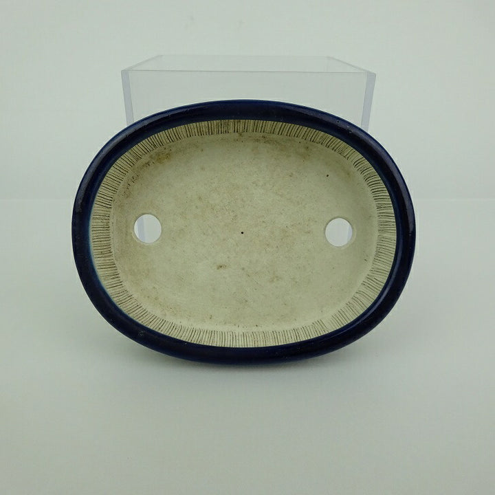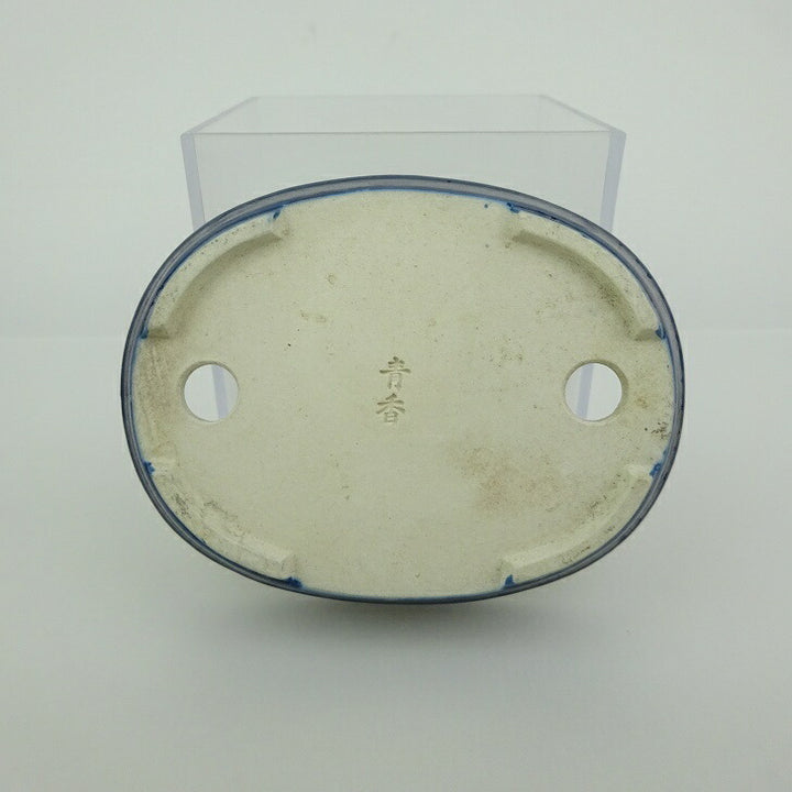 中古盆栽鉢 青香 小鉢 長辺 約10cm 楕円鉢 中帯 釉薬 中古鉢 k1198409980