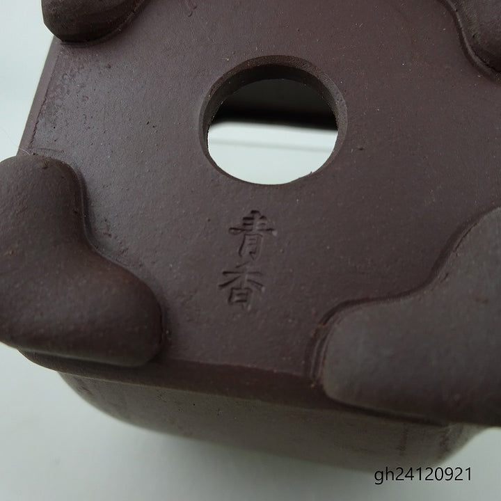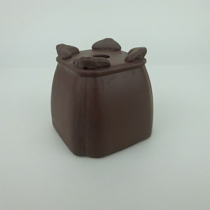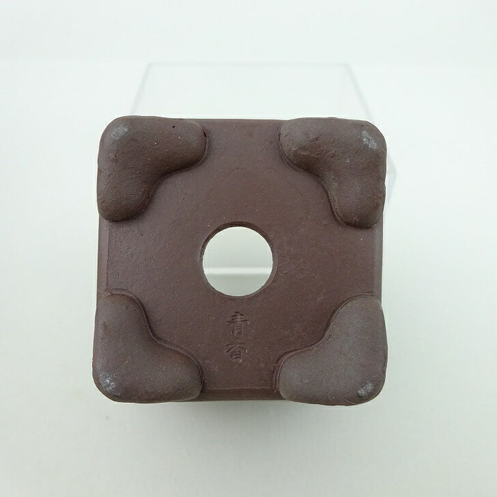 盆栽鉢 青香 小鉢 長辺 約 6.5cm 正方鉢 隅入 雲足 下帯 泥物 現品 中古鉢 品名青香...