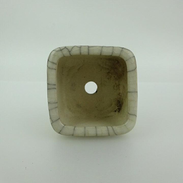 中古盆栽鉢 青香 豆鉢 長辺 約4.5cm 正方鉢 貫入 釉薬 中古鉢 x1198411987