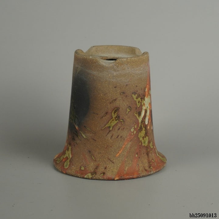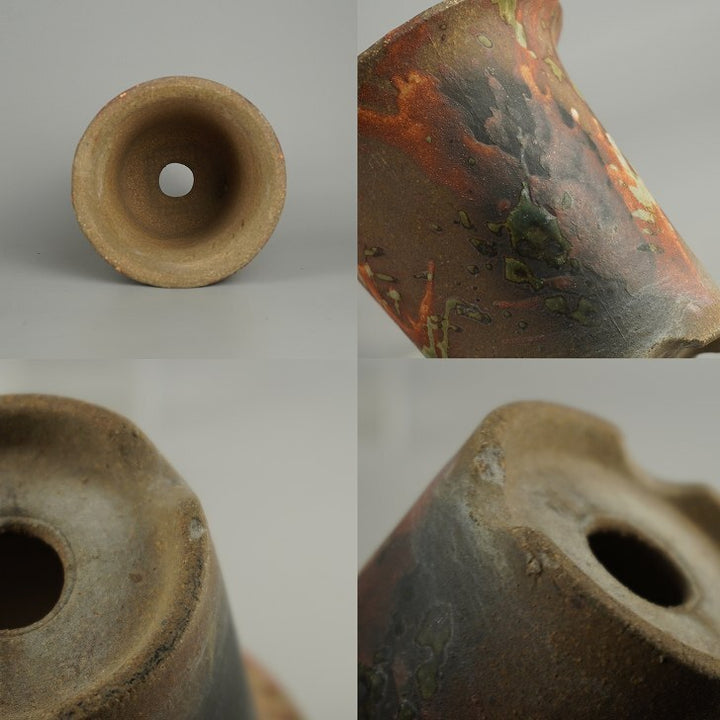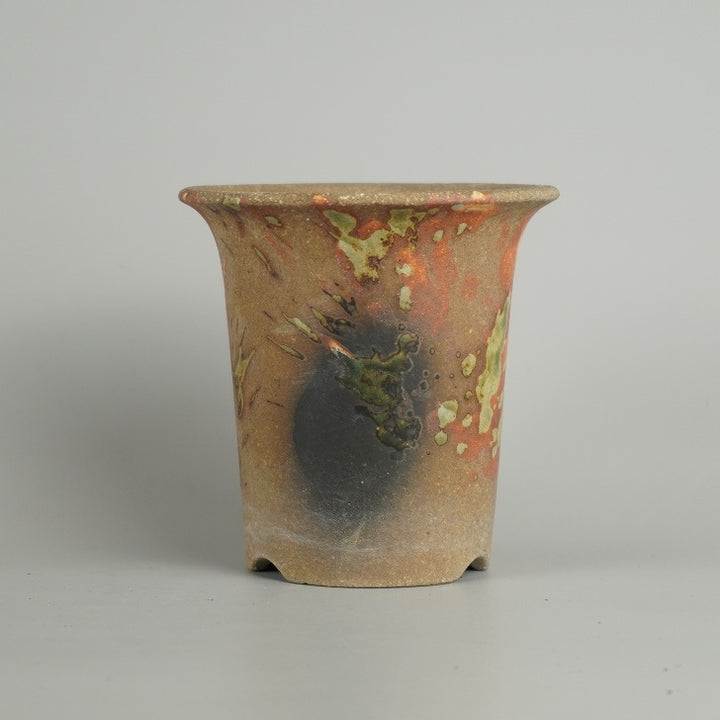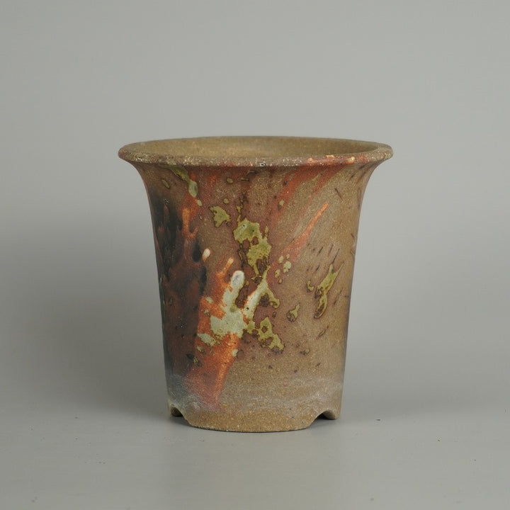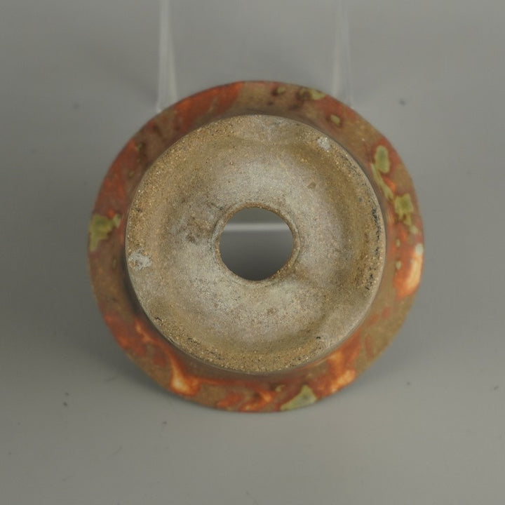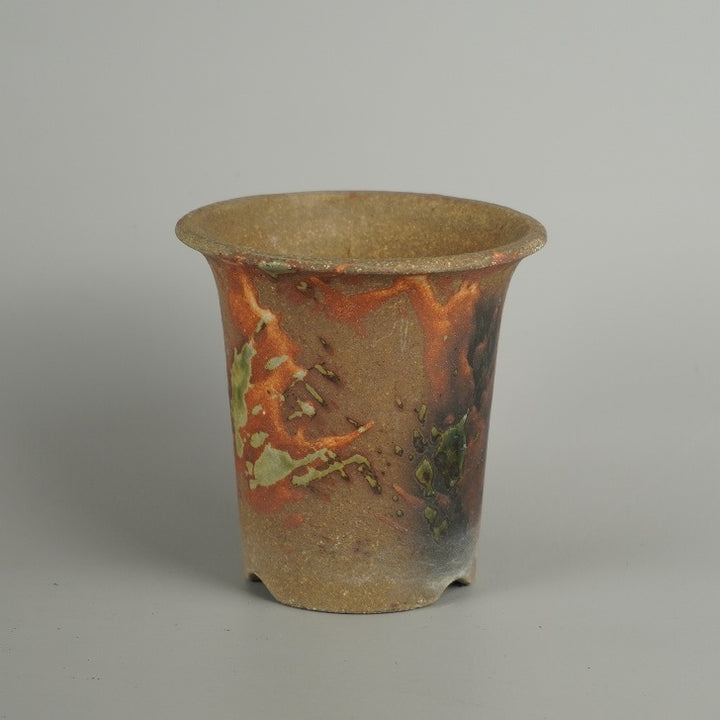 鉢 植木鉢 ラン鉢 小型 高さ 約10.3cm 丸鉢 色絵 模様 泥物 現品 中古鉢 品名落款なし...